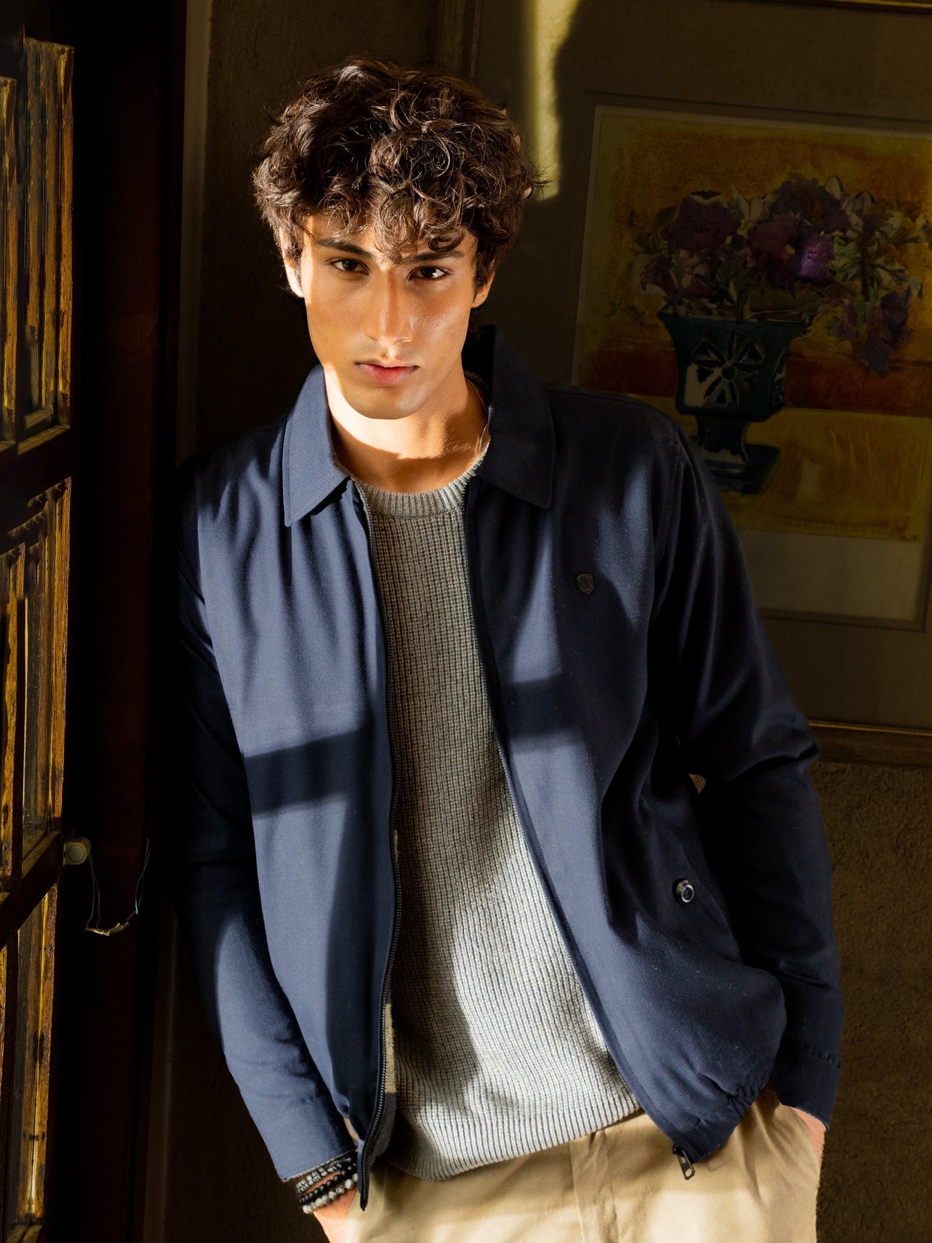 Stay warm and stylish in this men’s navy twill harrington jacket with collar. Crafted from durable twill fabric and featuring a soft flannel inner lining for added warmth, it offers timeless style and all-day comfort. Perfect for effortless layering in any season.