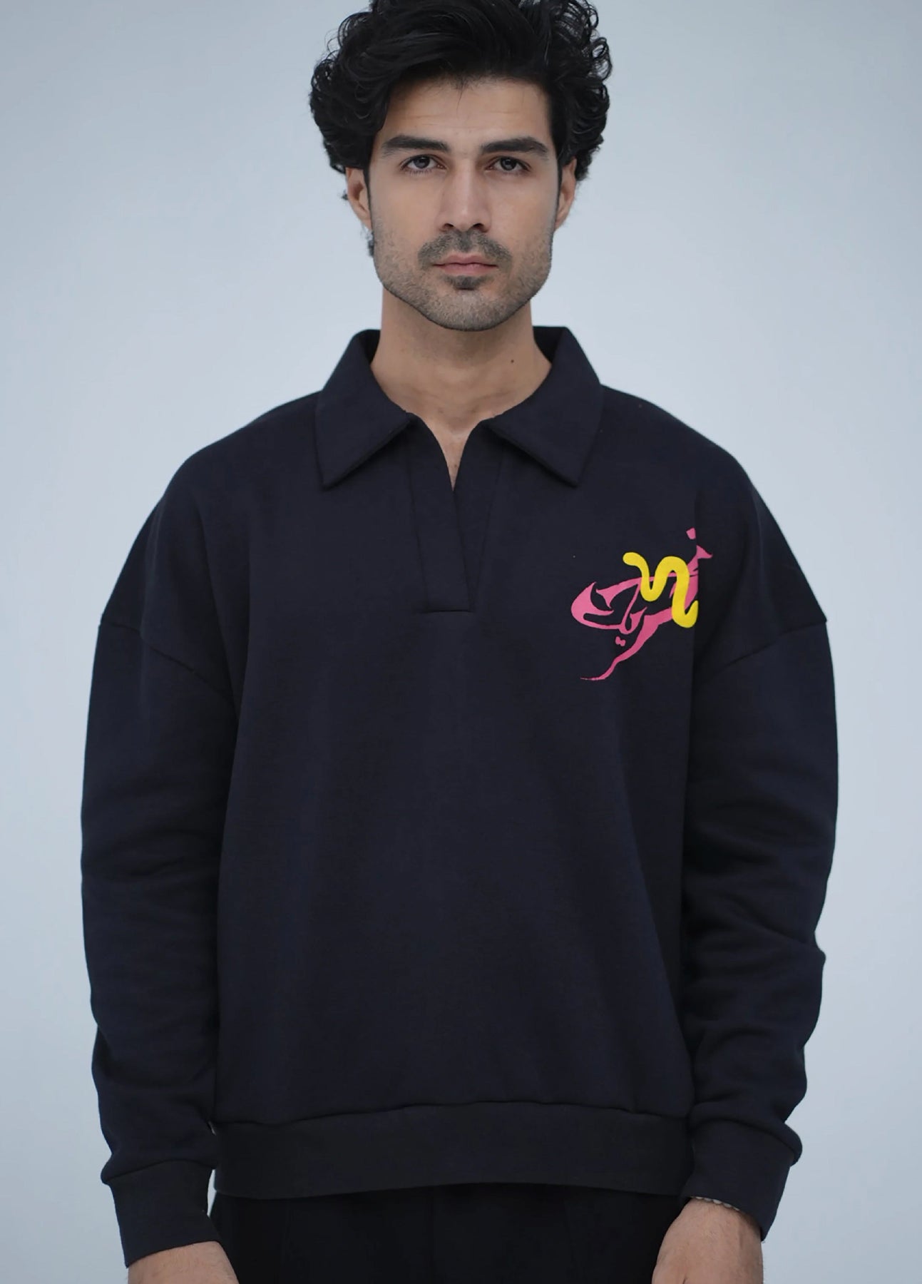 A deep indigo fleece with 70,000+ precision stitches, mixing embroidery and subtle print detailing for rich texture. Relaxed, warm, and made for cooler days — a premium cultural layer with elevated craft and everyday wearability.