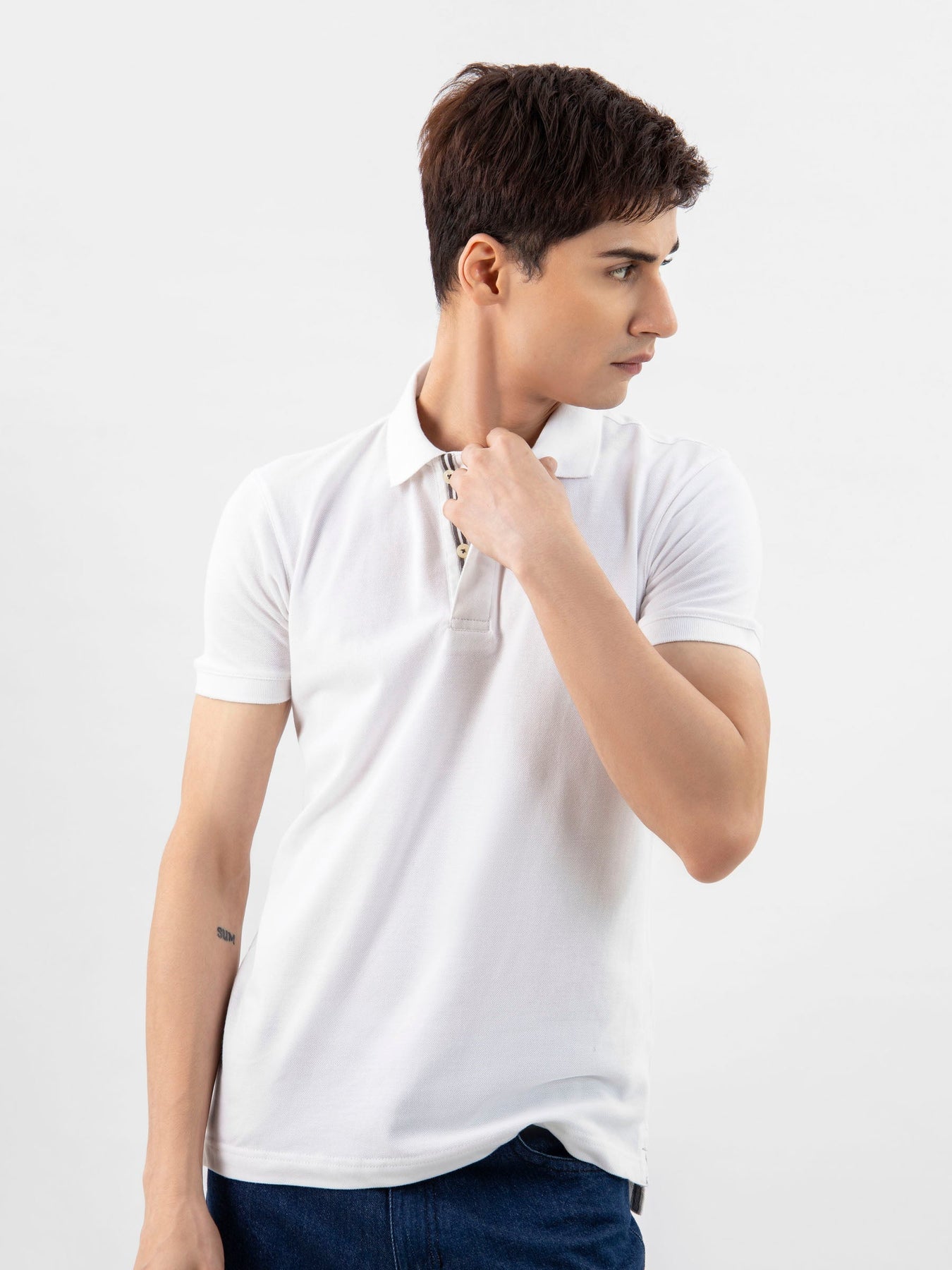 Brumano Solids Cotton Polo White 100% Cotton Basic Polo