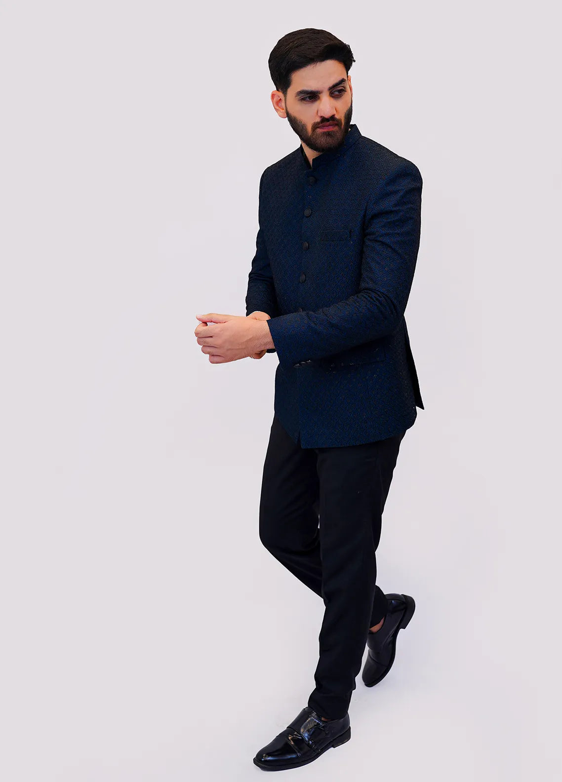 Embroidered Men Raw Silk Prince Coat