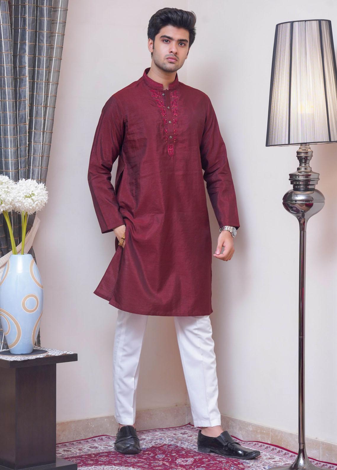 Formal Style Kurta for Men , Easy Iron , Dry Clean Only , Formal Raw Silk Fabric with Rich Hand Embriodrey , Special For Festive Use