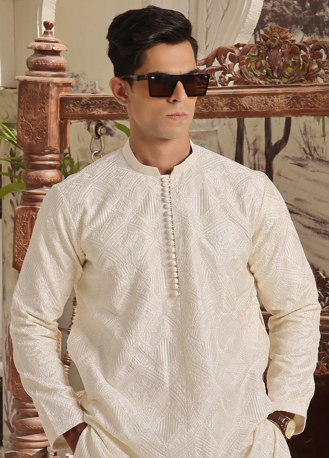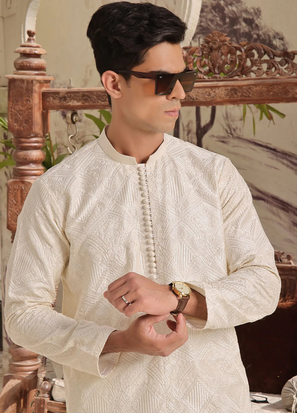 Mens Formal Embroidered Kurta Pyjama Paired with Embroidered Prince Coat