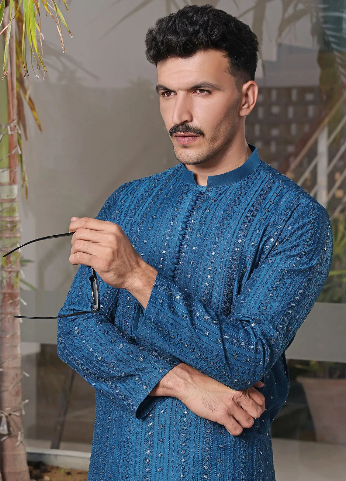 Mens Formal Embroidered Raw Silk Kurta Pyjama
