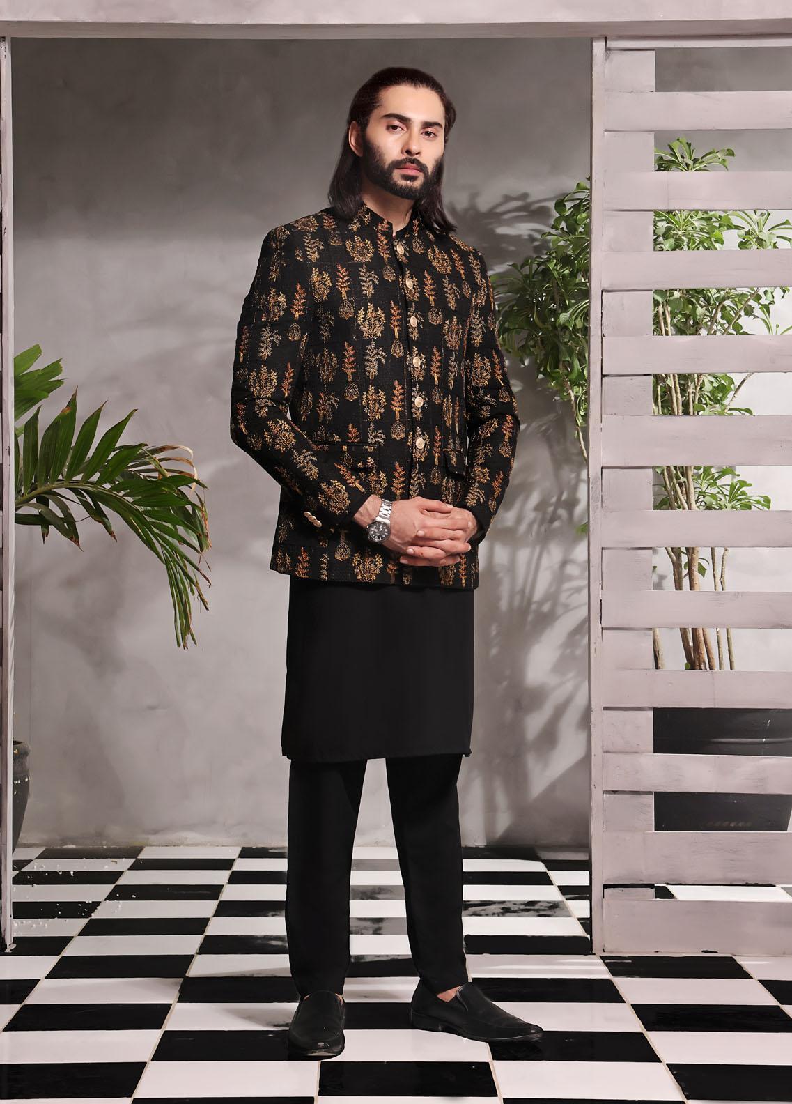 Mens Formal Prince Coat on Raw Silk Fabric with Chikan Embroidery