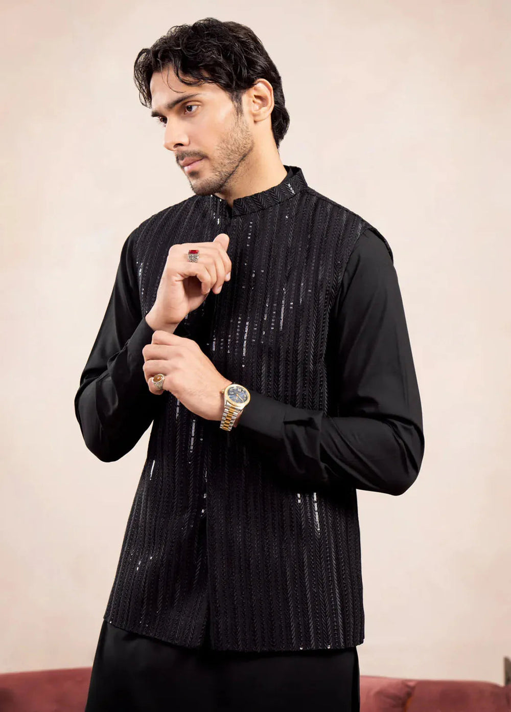 Muraqsh Pret Embroidered Raw Silk 1 Piece Arrow Sequin Embroidered Waistcoat