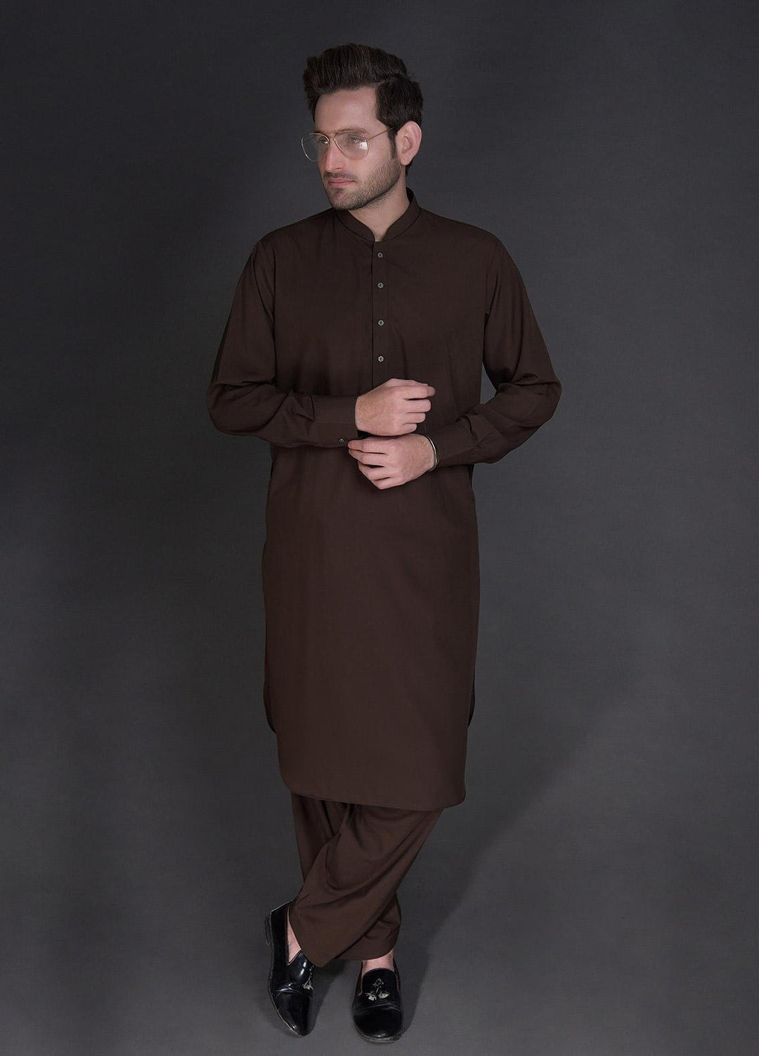Aizaz Zafar Wash N Wear Formal Kameez Shalwar for Men - D-685 Dark Brown
