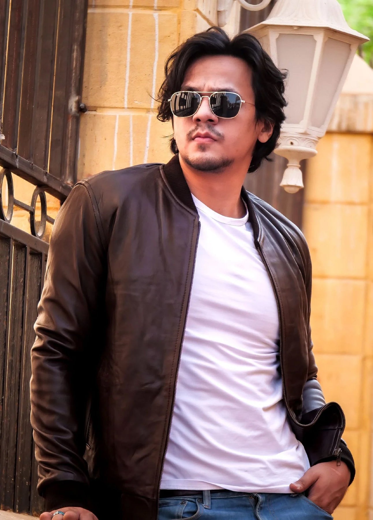 This Real Bomber Leather Jacket Brown Color is a style that never seems to go out of fashion. It comes with a simple and classy rib knit collar and cuffs design and features, and a modern fit.