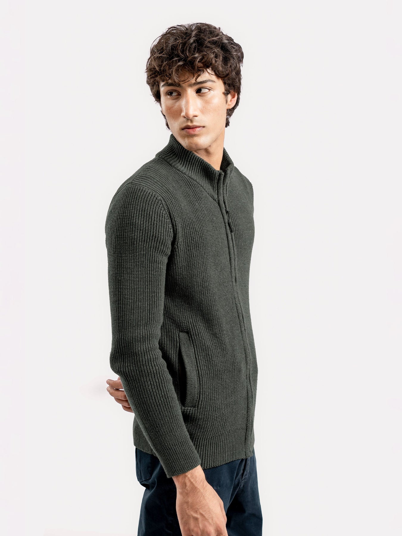 Stay cozy and stylish with our olive green knitted chunky zipper jacket. Crafted from chunky, soft knitted yarn, it offers warmth, comfort, and a modern textured look—perfect for chilly days and casual outings.