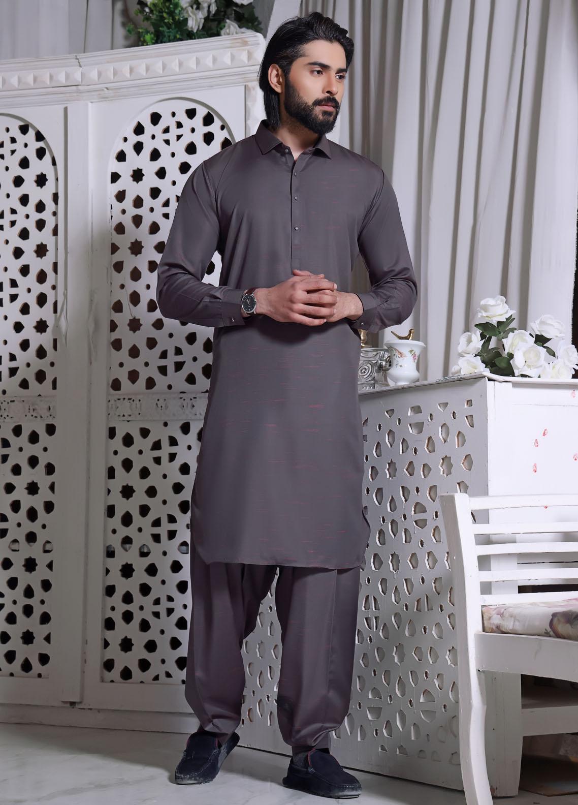 The Great Master (TGM) Wash N Wear Festive Kameez Shalwar for Men - Gray Stone