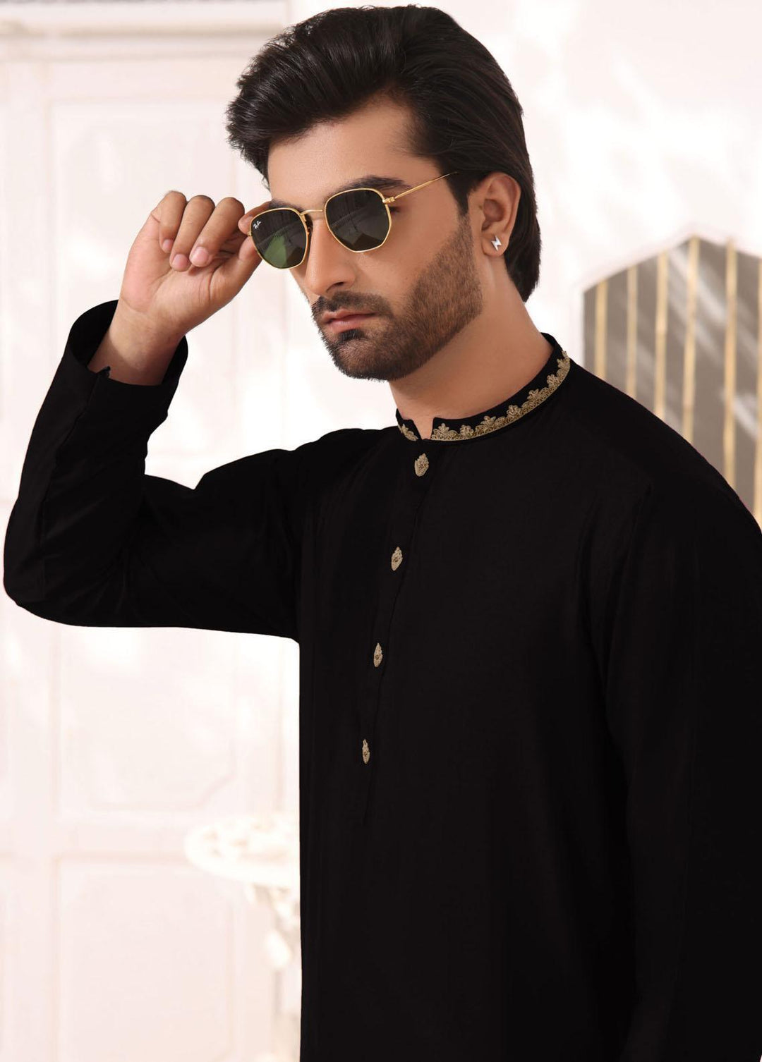 Real Image Raw Silk Formal Kurta Pajama for Men - D-515 Black