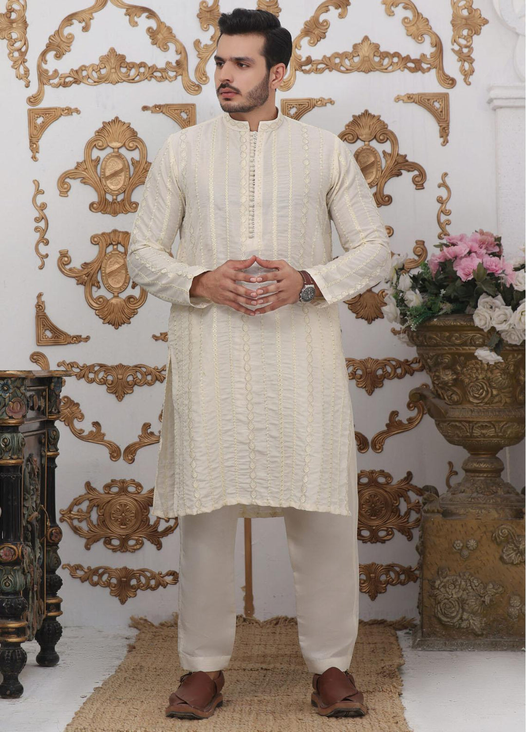 Stylish Banarsi Embroidered Men Kurta Pajama - SK-1254