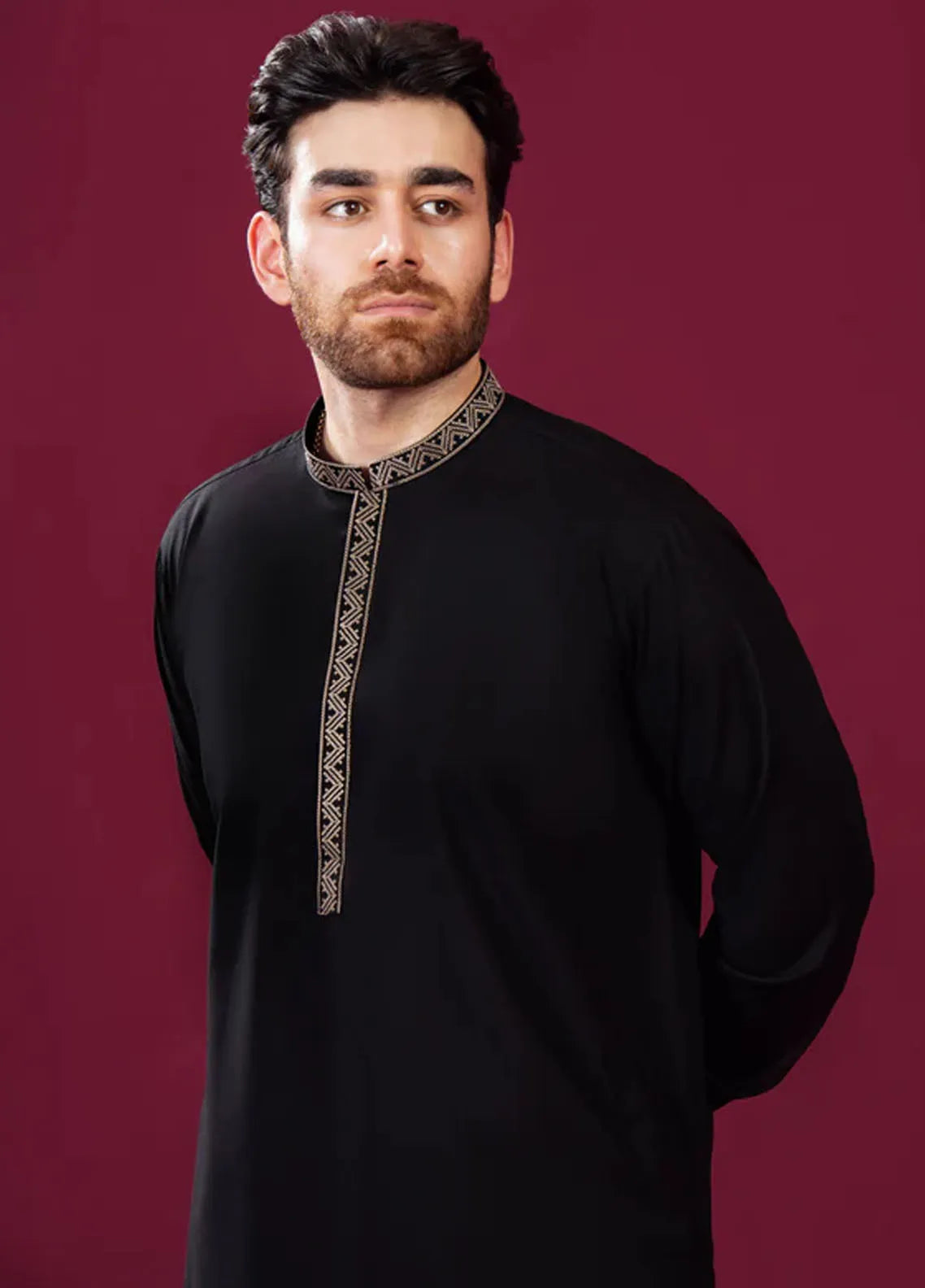 Muraqsh Blended Mens Formal Black Kurta Shalwar Pattern Collar