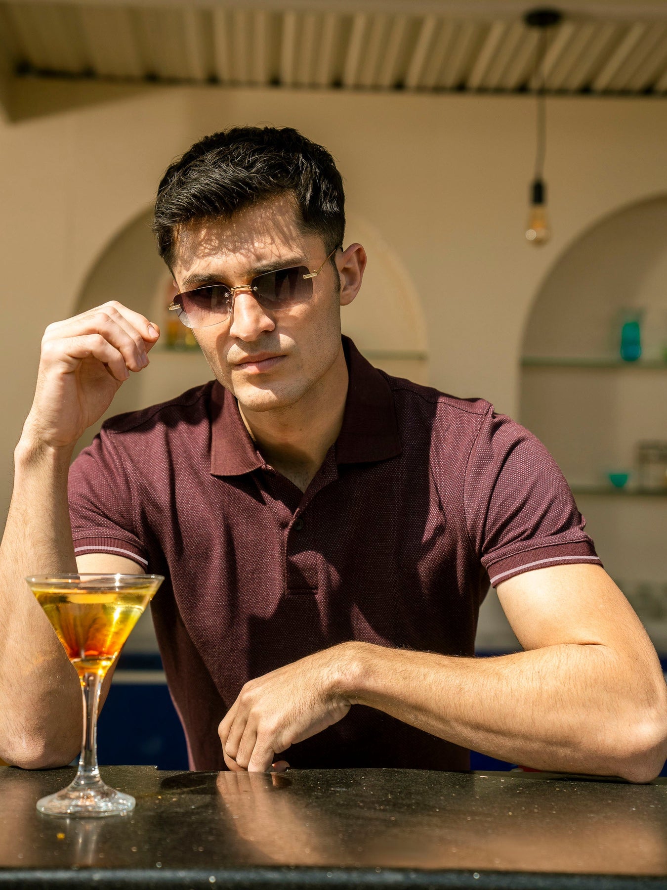 The maroon dobby structured polo combines classic style with modern sophistication. Crafted from a textured dobby fabric, this polo offers a structured fit with a subtle pattern that adds depth and elegance. Finished with ribbed contrasting cuff. Ideal for both casual and semi-formal occasions.
