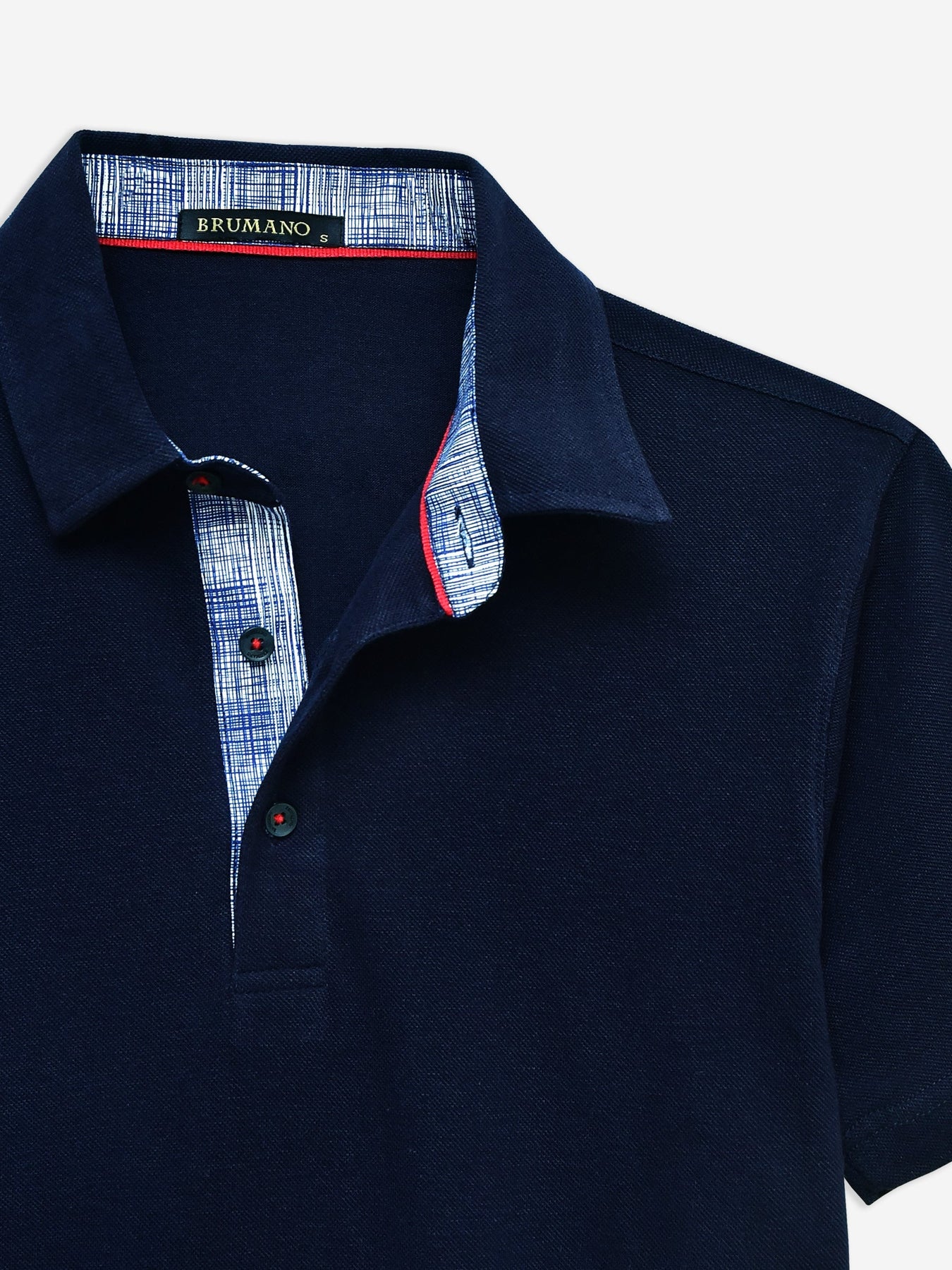 Elevate your casual wardrobe with our mens navy blue self collar polo, featuring sharp contrasting detailing for a refined edge. Crafted from soft, 100% cotton pique fabric, it offers all-day comfort with a modern fit. Perfect for both smart-casual outings and weekend wear.