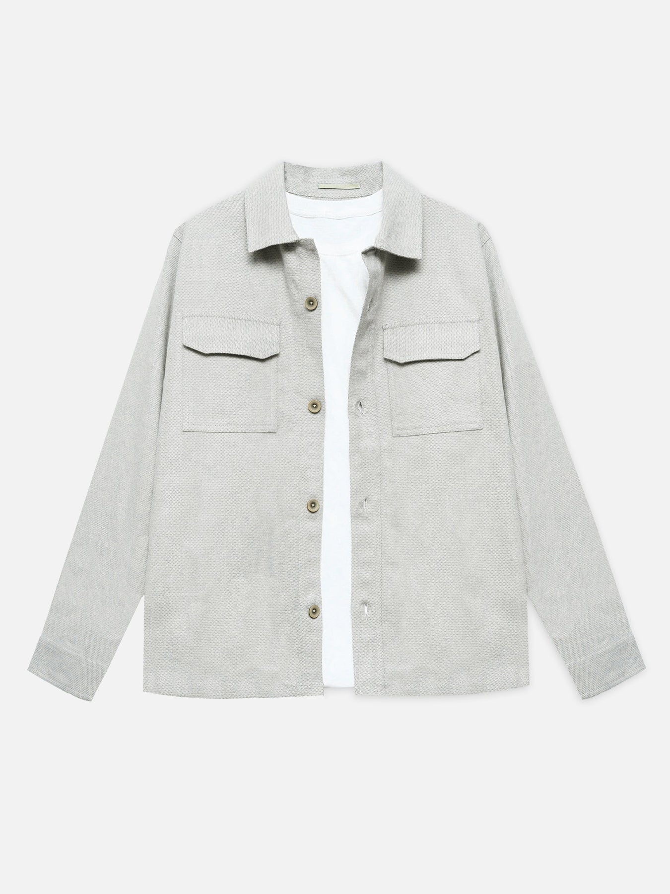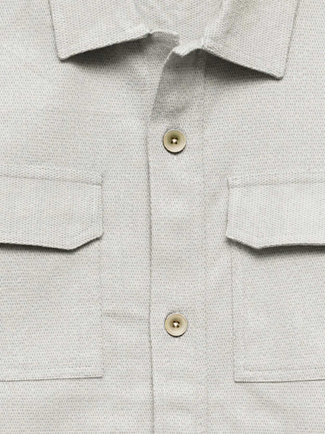 A timeless beige structured overshirt with a casual look. Featuring a front button, two flap pockets & shallow collar. Easy to layer, it works well for both casual and smart looks, making it a must-have staple.