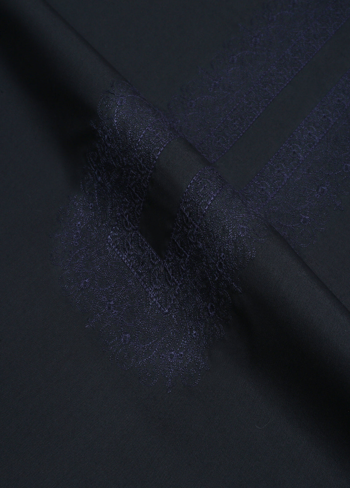 Product Category: Men Unstitch Cotton Thread Run-Stitch Neckline Embroidered Kameez Shalwar with Contrast Colors & Signature Pattern Embroidery Design.