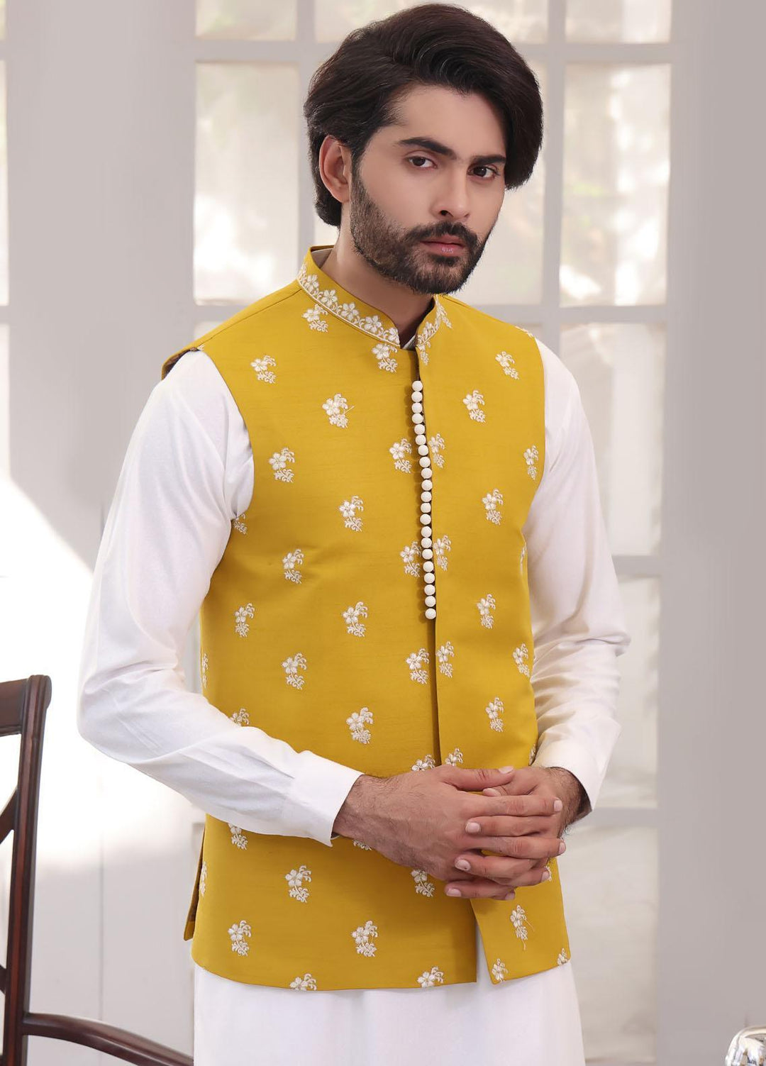 The Great Master (TGM) Wash N Wear Festive Waistcoat 3 Piece Suit for Men - Butter Bean