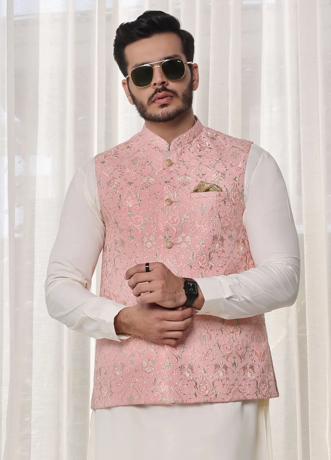Mens Formal Raw Silk Waistcoat with Embroidery