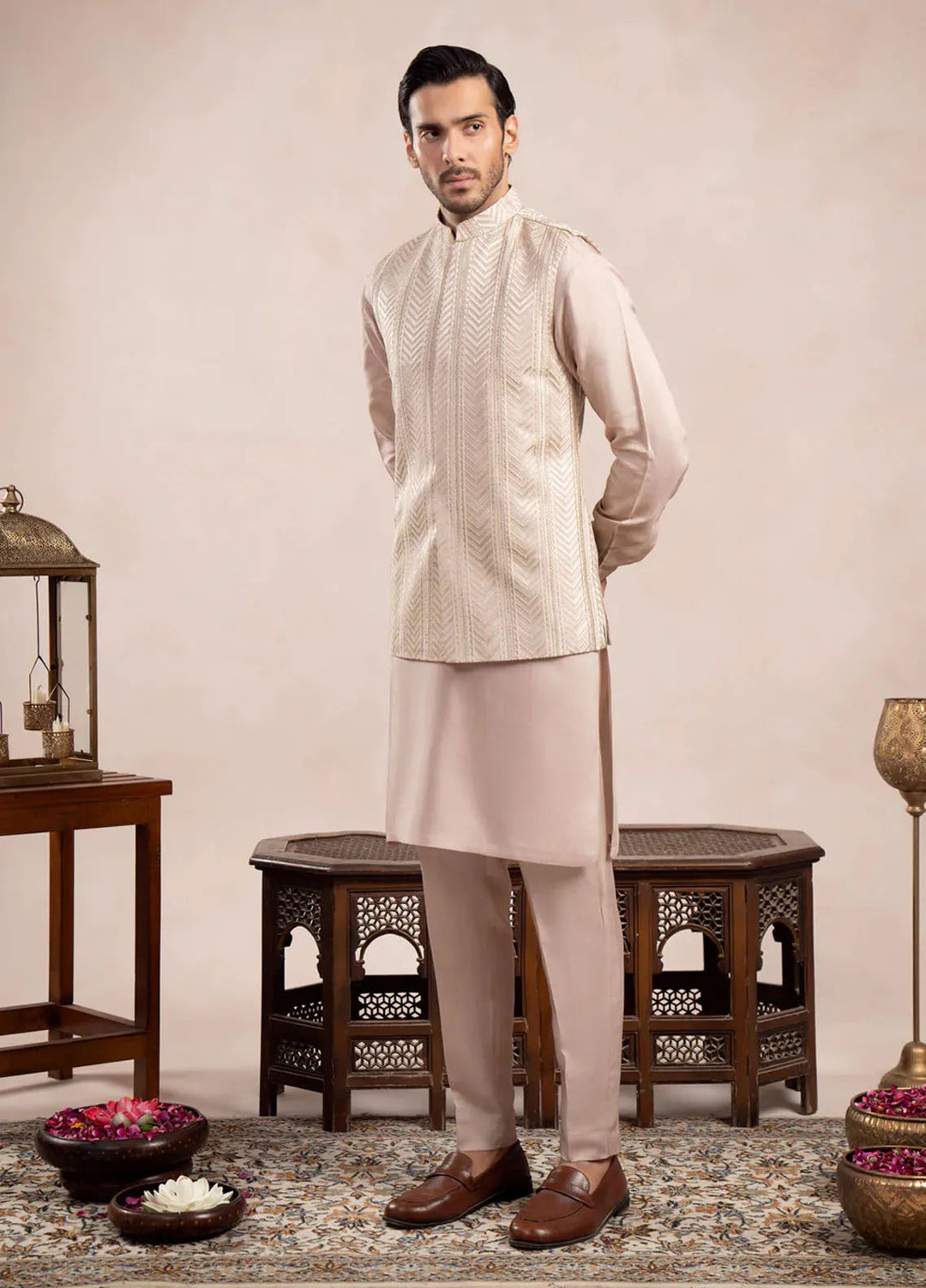 Stylish Wash N Wear Formal Kurta Shalwar with Waistcoat for Men - WA-900-333 Cream