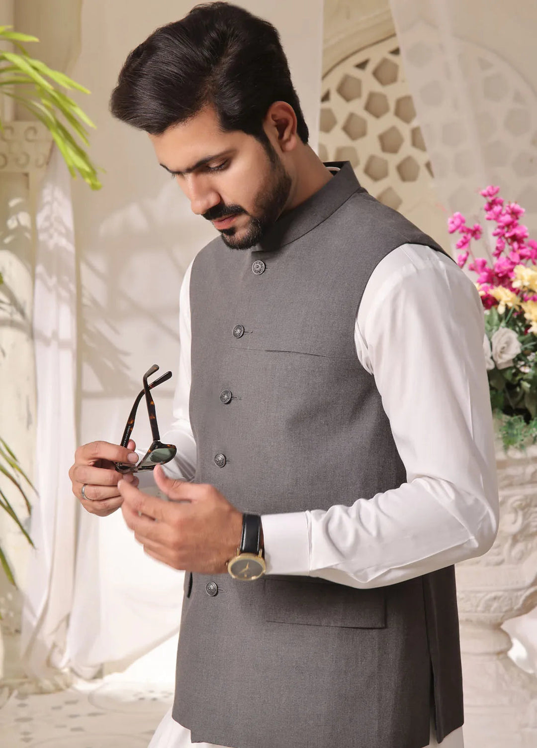 Stylish Wash N Wear Formal Kurta Shalwar with Waistcoat for Men - WA-900-111 Grey