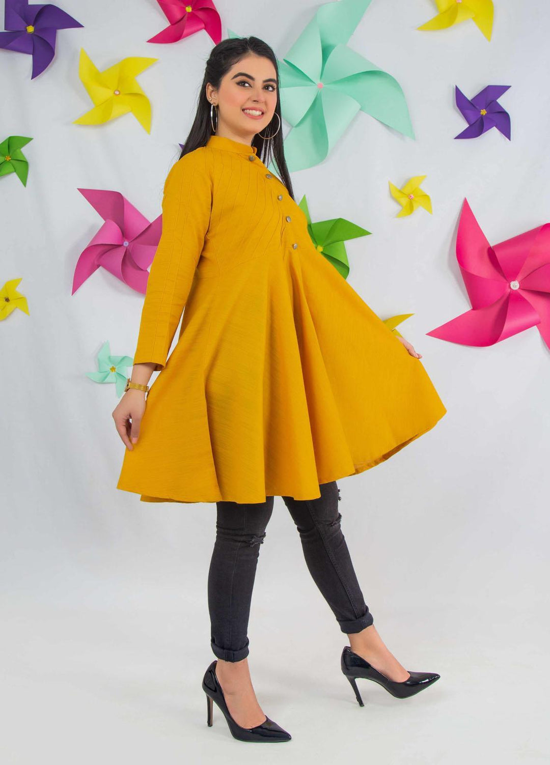 Size worn by model: Small Suit: 1 piece Fabric: Khaddar Detailing: Astonishing khaddar kurta with frilled style and body with pintex gives it a perfect touch of fashion glory Color options: Mustard and Gray