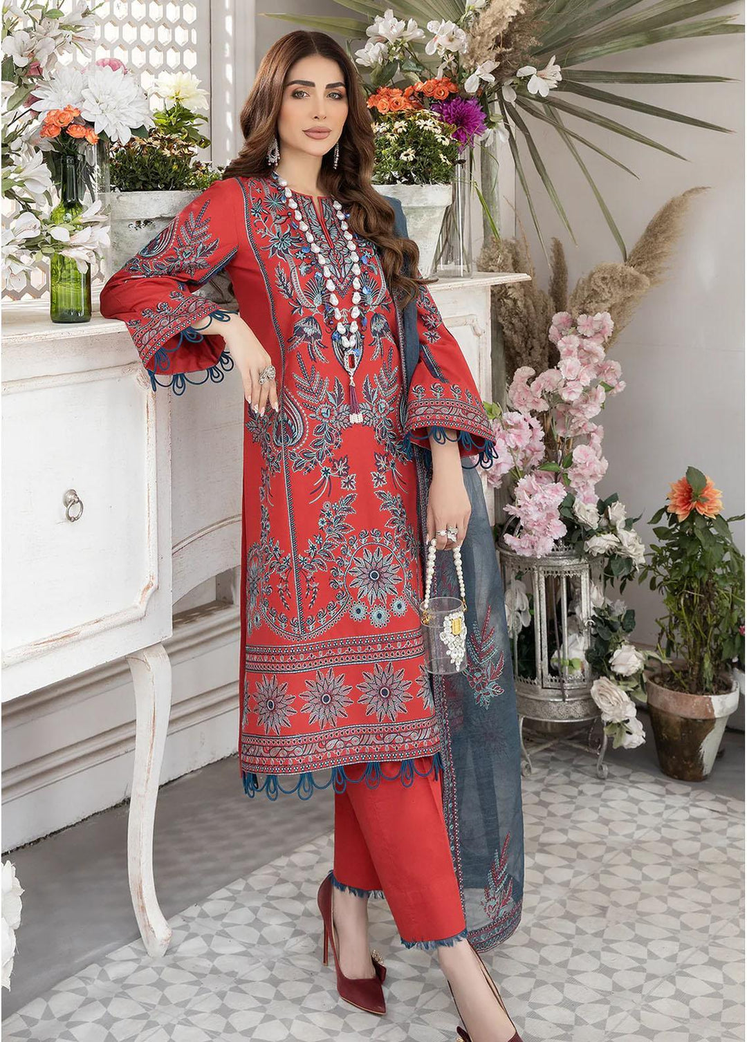 Summer is the season to wear lawn fabric and when summer arrives in Pakistan ladies go crazy because of each and every designer brand is involved in making summer collection and Mohagni tops the list, this summer Mohagni is offering their unstitched lawn collection which is designed by following the latest modern trends, the best thing about this collection is the fabric they have used, they have used finest quality of lawn fabric which is ideal for summer season, this fabric will also help you to keep your body warm in that season. This collection consists of 3 piece unstitched suits shirts in this collection are embellished with intricate embroidery work and dupatta have beautiful prints which are paired with cigarette trouser.