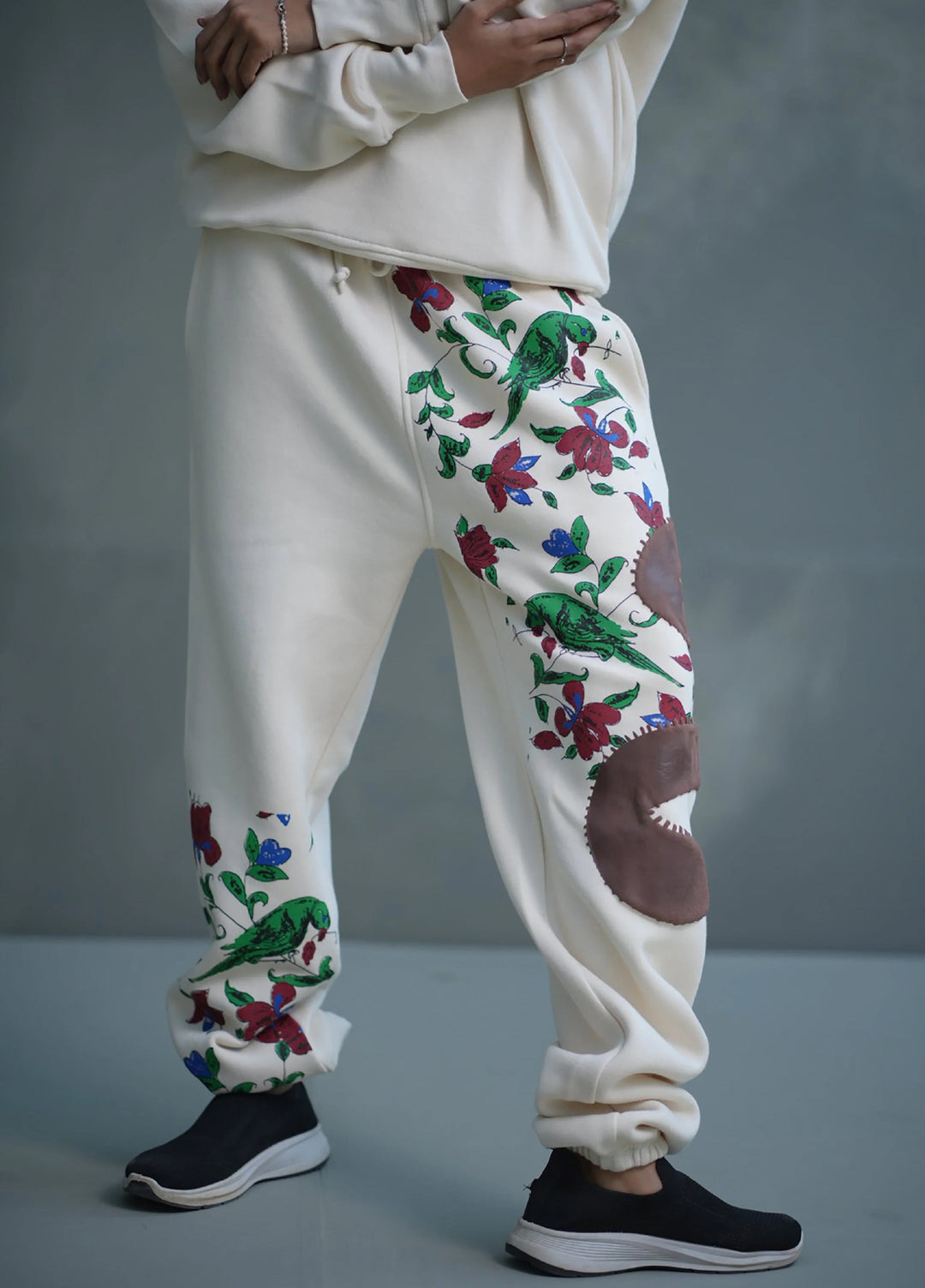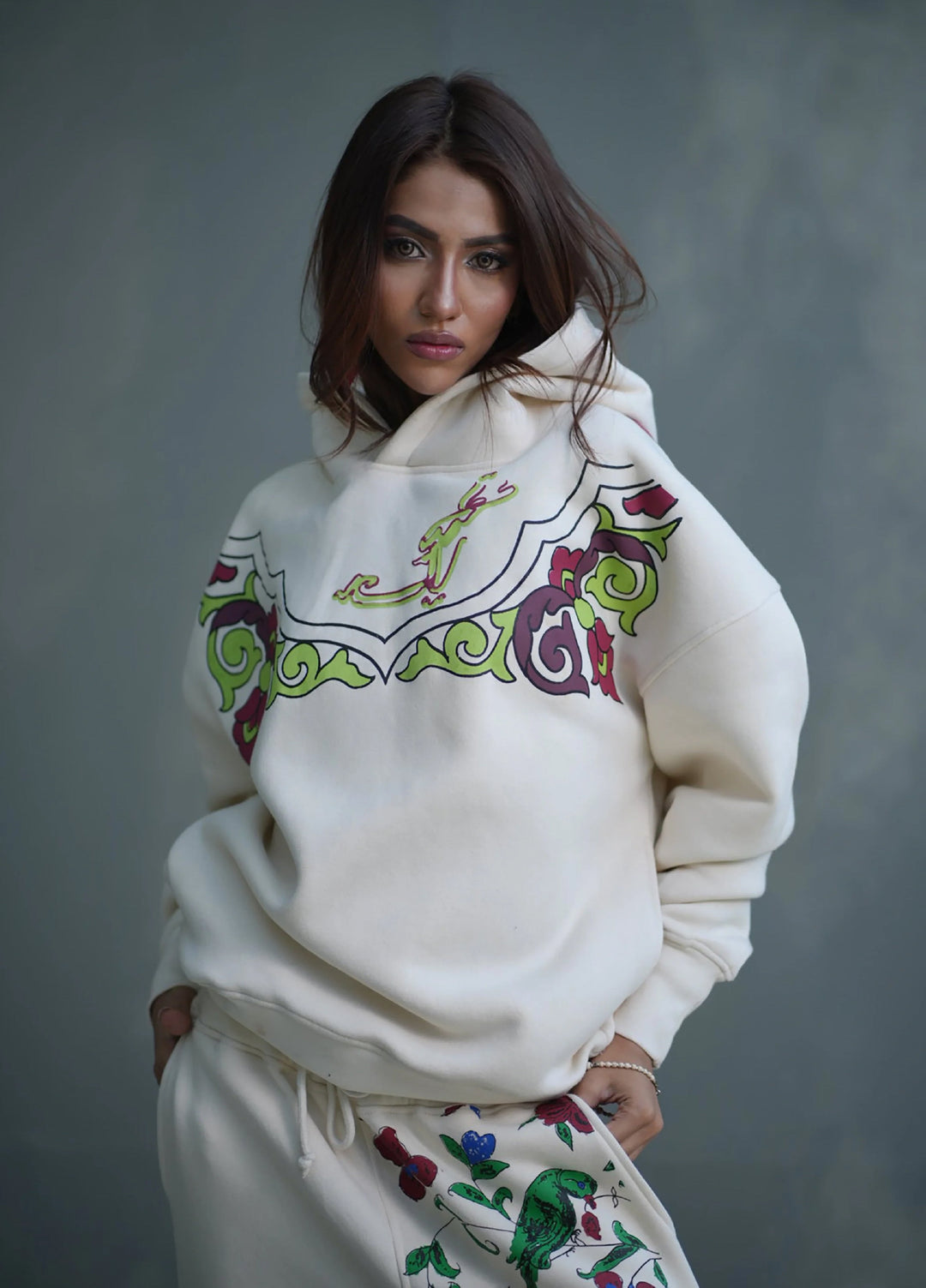 Movement Unisex Western 1 Piece Printed Fleece Ivory Garden Hoodie - Winter Collection