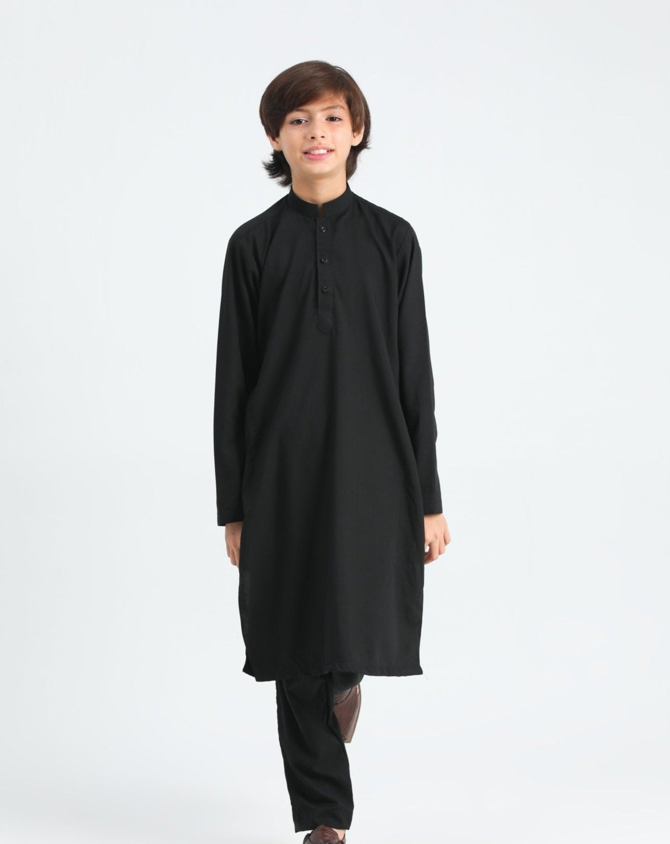 Muraqsh Ready To Wear Solids Cotton Boys Crow Black Kurta Trouser MUR-CBK - Summer Collection