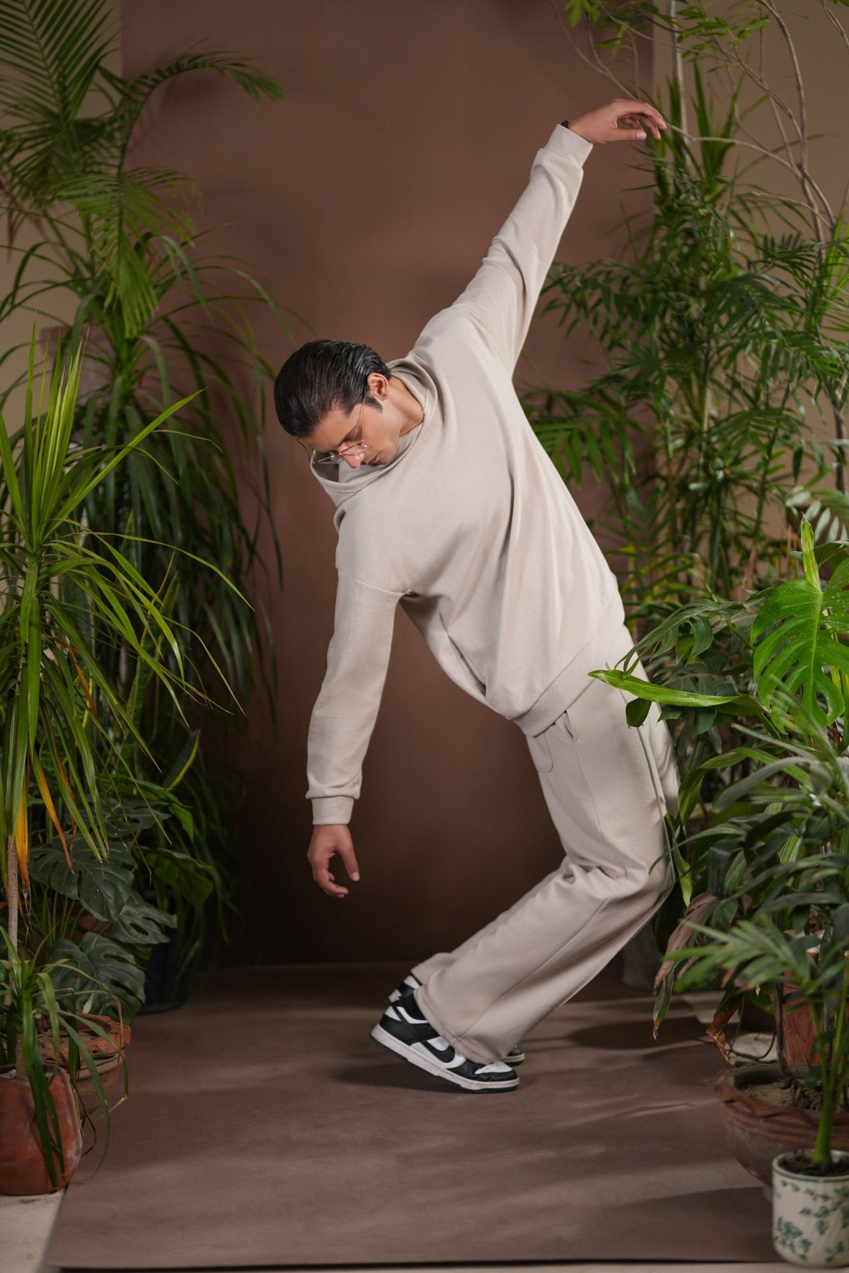 Two-Piece Interlock Knit Coord Set Featuring A Soft Pullover And Matching Trouser. Ecru White Shade Offers A Clean, Minimal Look With Comfortable Winter Warmth.