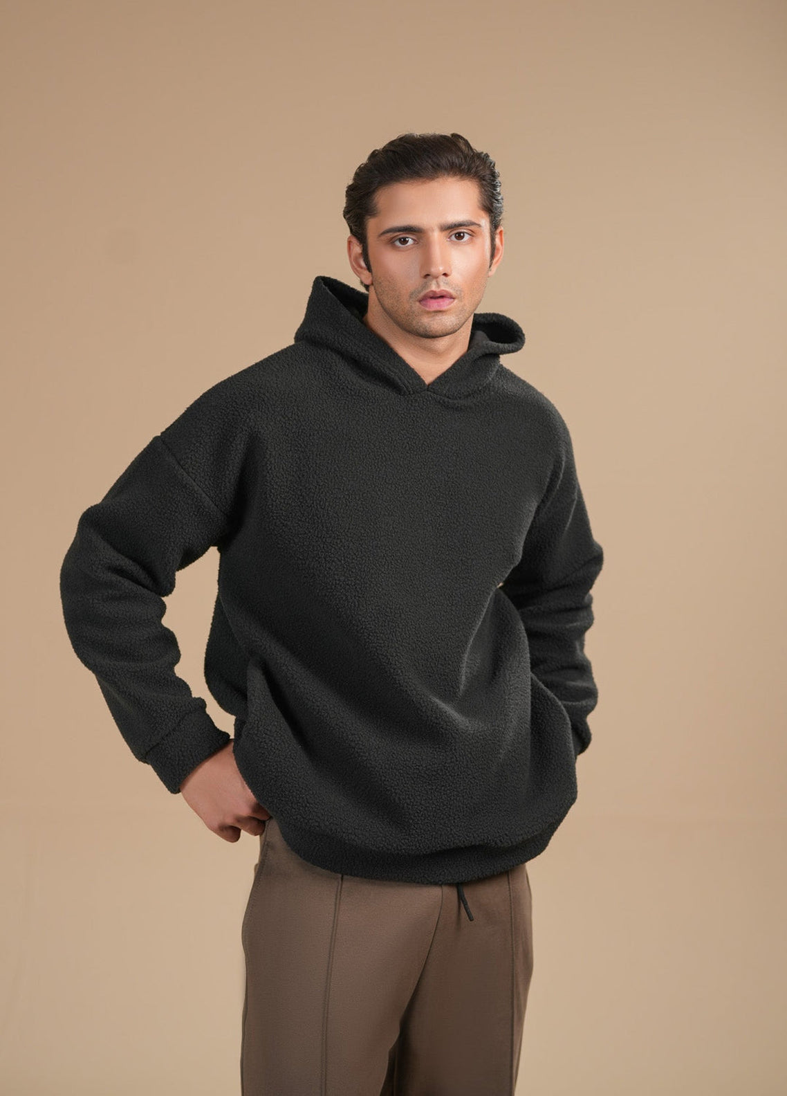 Hooded Sweatshirt In Soft Sherpa Fabric. Classic Black Shade Offers A Sleek Look With Warmth And Comfort For The Season.