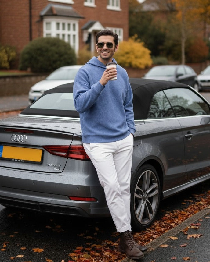 Pullover Hoodie Crafted From Textured Waffle Knit Fabric. Sky Blue Shade Adds A Fresh, Relaxed Vibe With Soft Warmth And Everyday Comfort For Winter Wear.