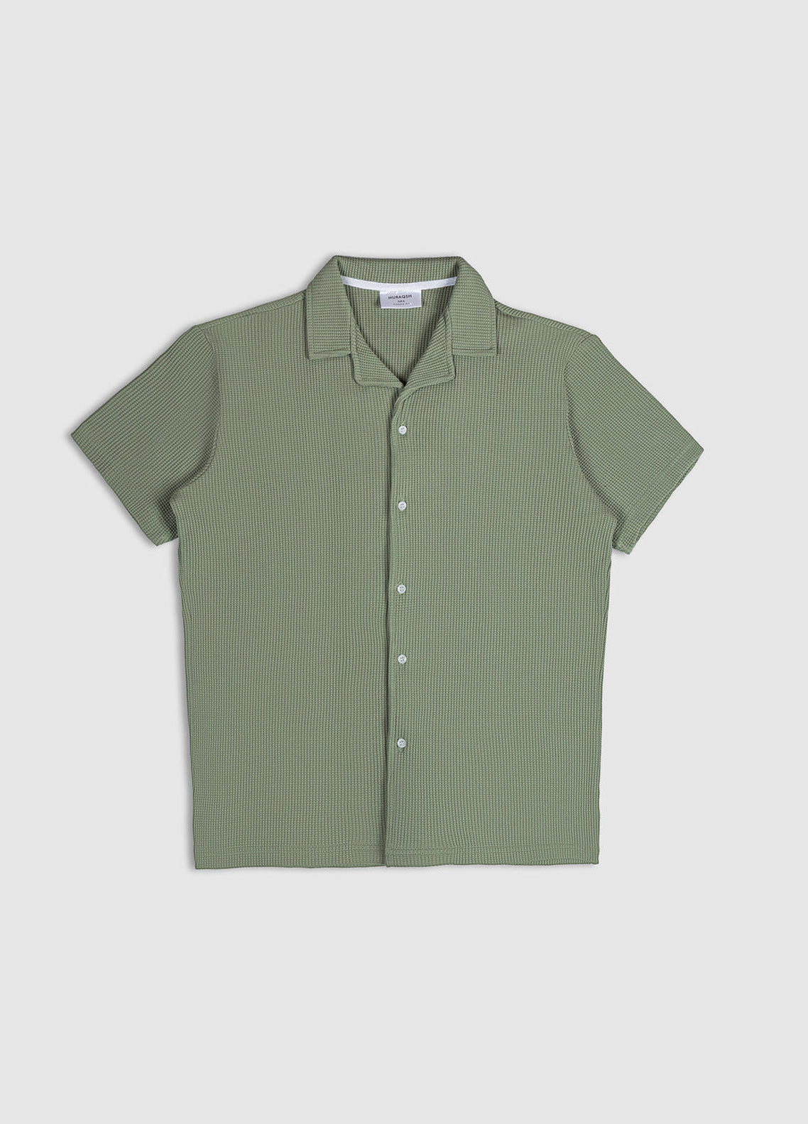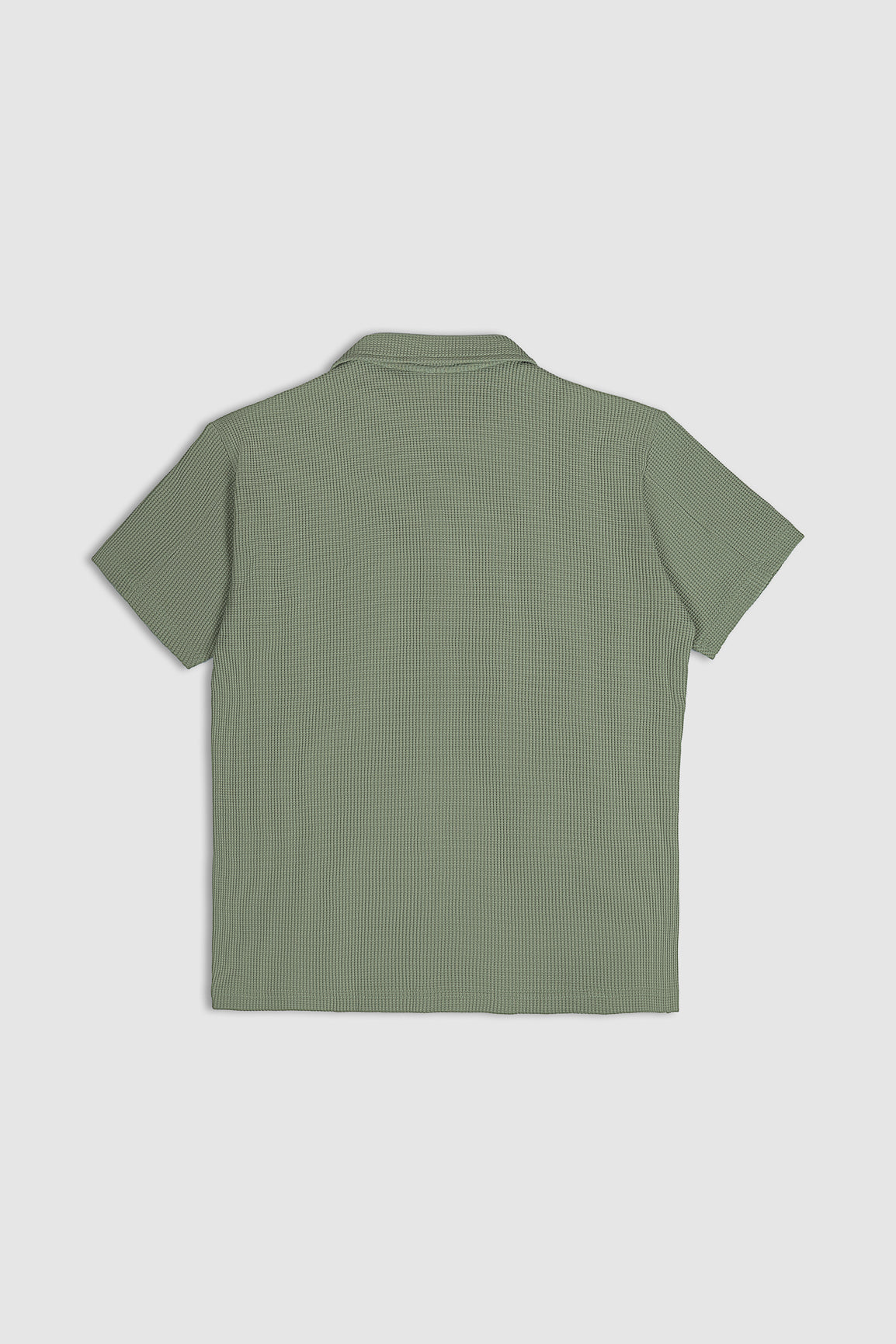 Mint Waffle Textured Revere Button-Down Soft Fabric And Classic Collar. Adds A Fresh, Stylish Touch To Casual Outfits.