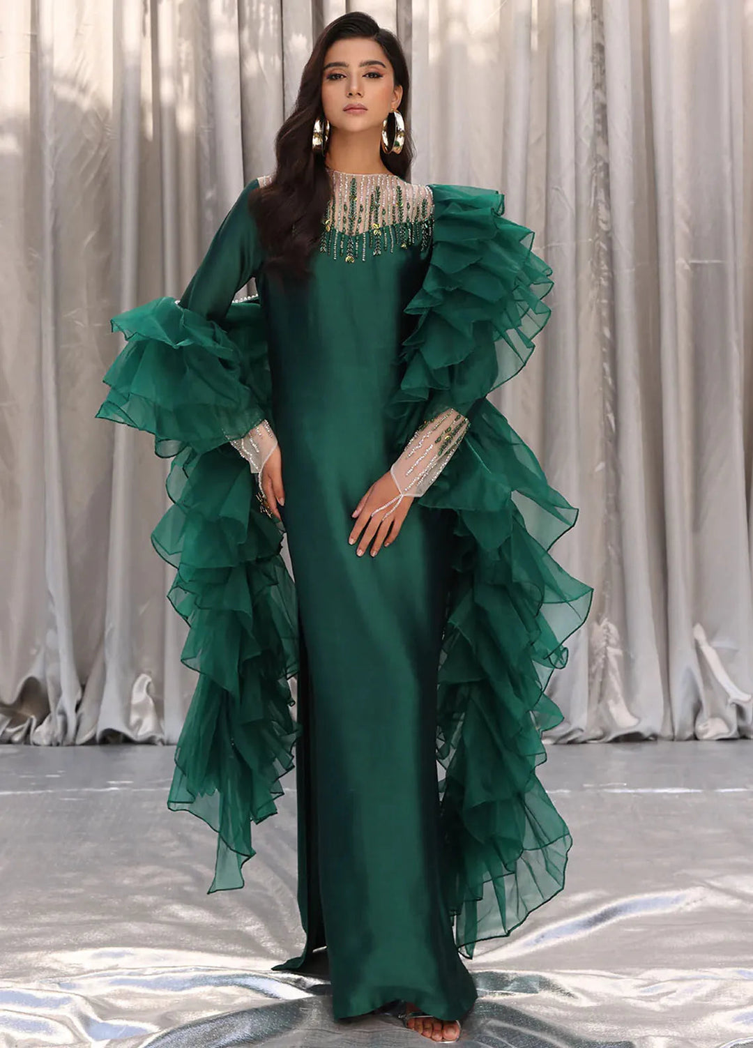 Mount Olypus by Musferah Saad Pret Embroidered Chiffon Kaftaan Emerald Eclat - Festive Collection