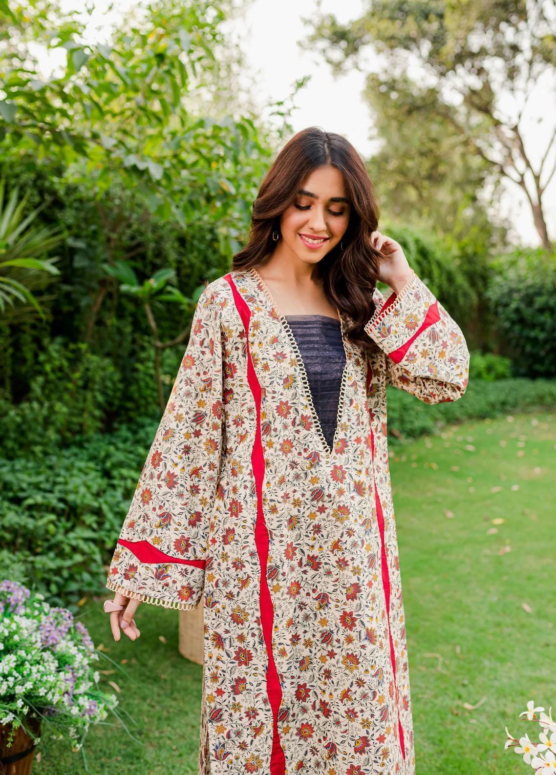 Details: Digital printed lawn shirt with matching pants with lace sleeves and side panel details.