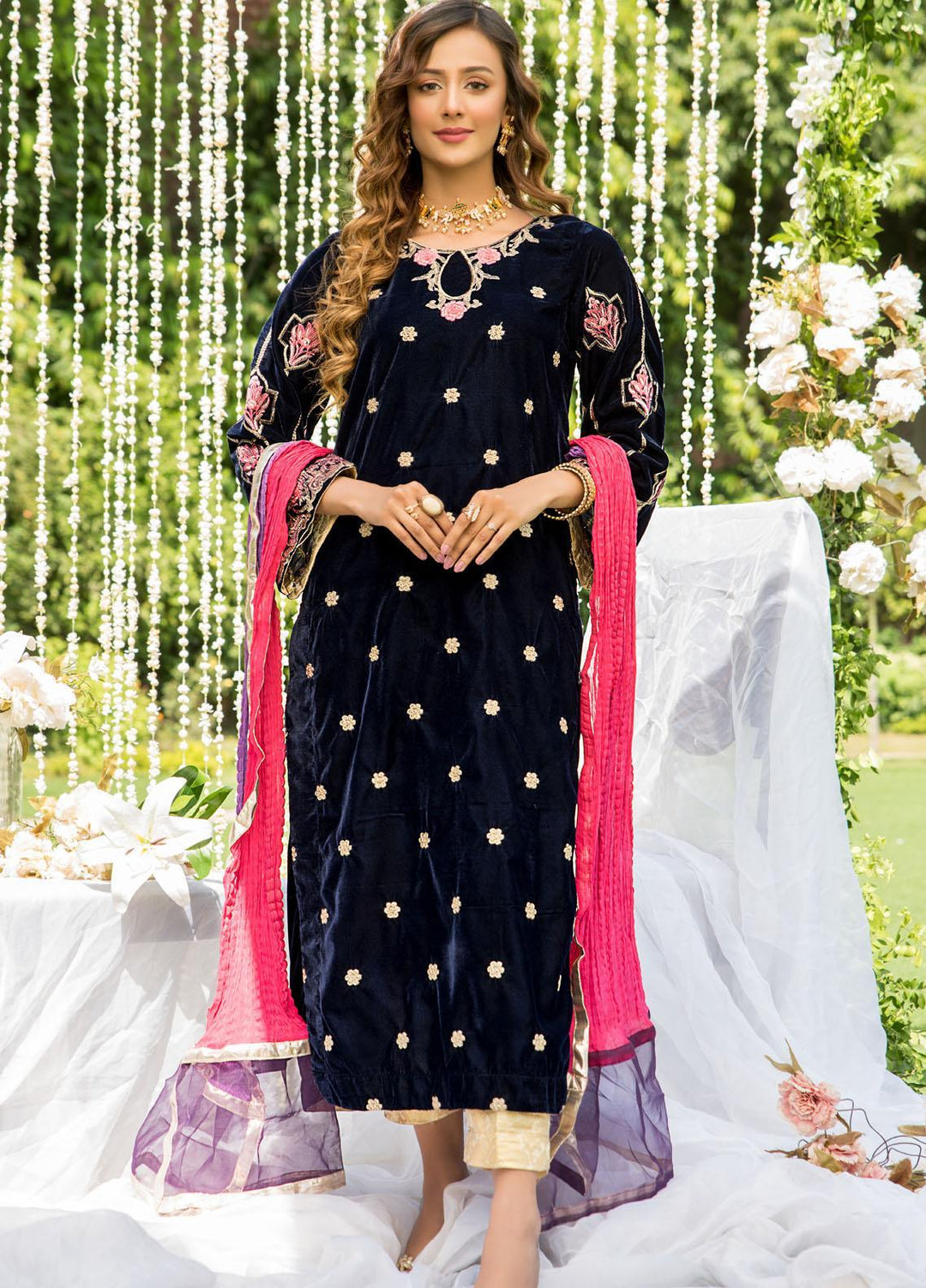 Naayas Luxury Pret Embroidered Velvet 2 Piece Suit Tropica