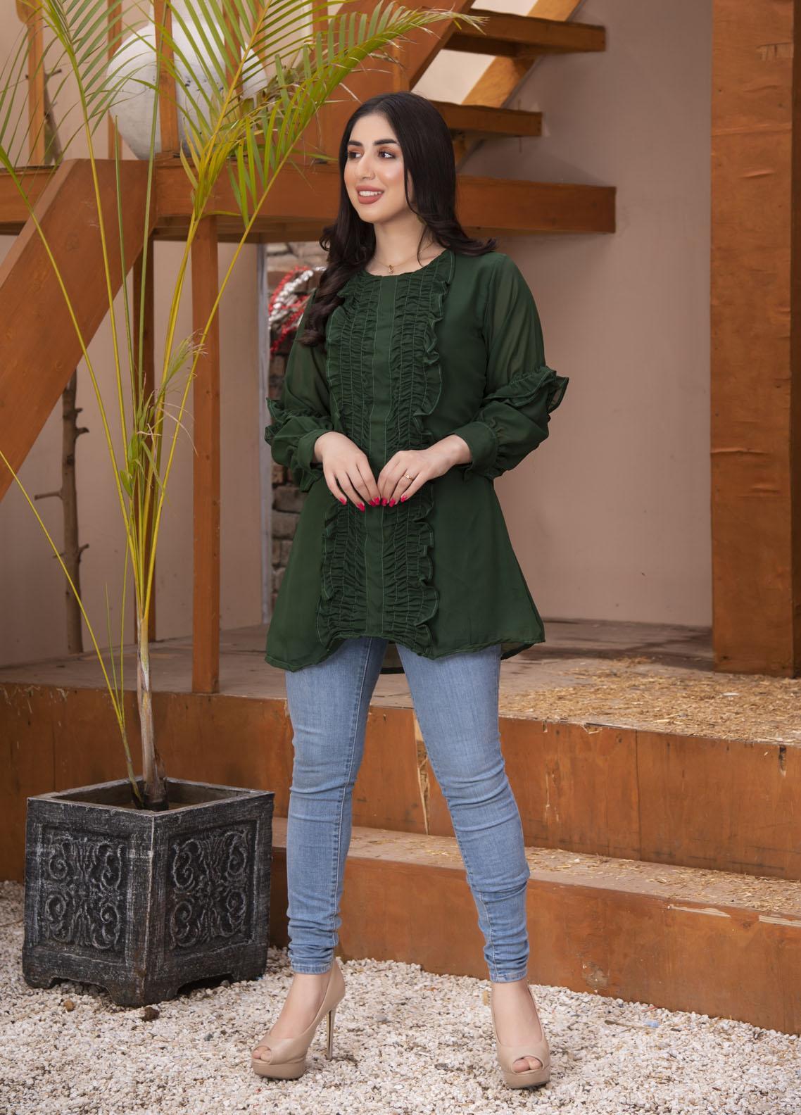 Nazmina Pret Casual Chiffon Top Dark Viridescent ABB-70