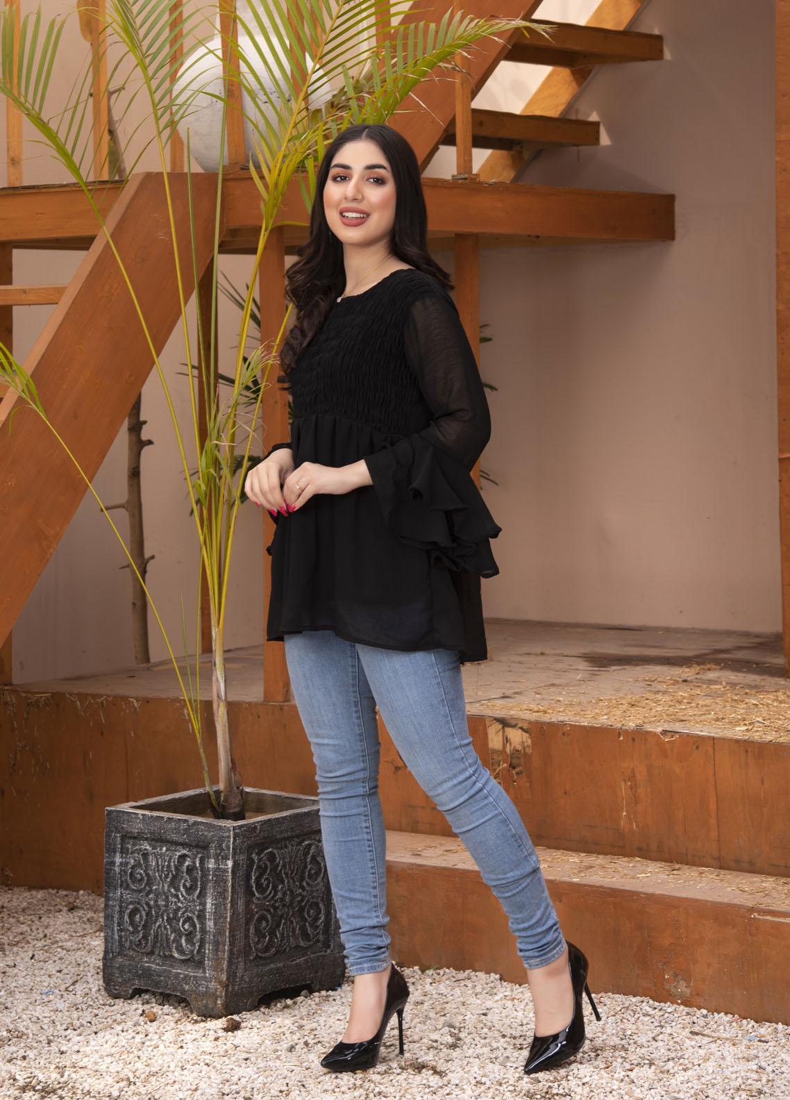 Nazmina Pret Casual Chiffon Top Noir Smoke ABB-52