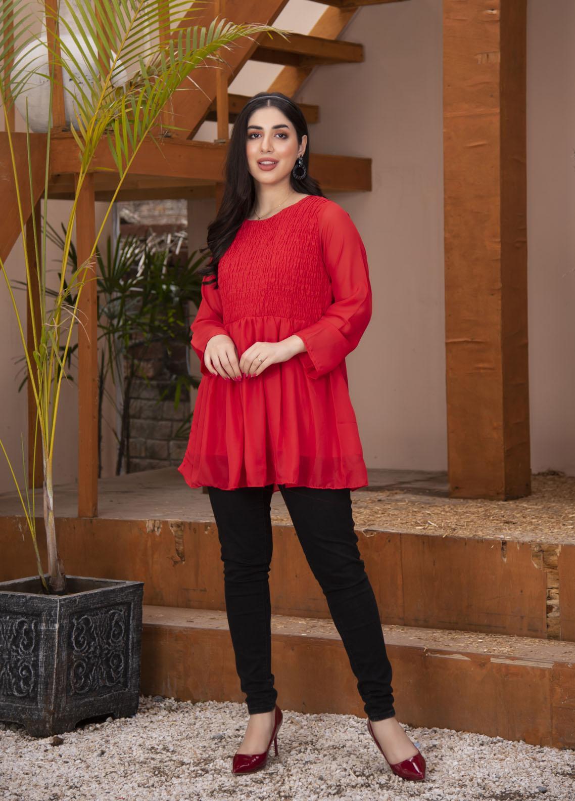 Nazmina Pret Casual Chiffon Top Red Smock ABB-60