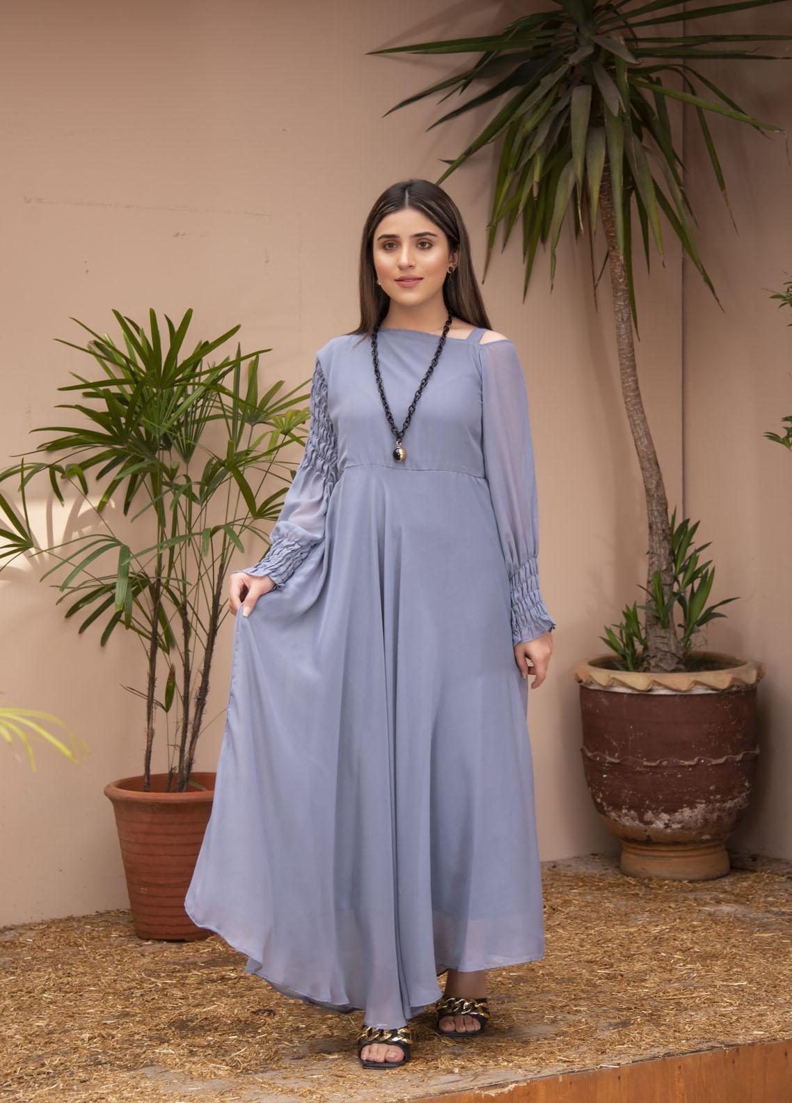 Nazmina Pret Chiffon Western Dress GREY SHARK FR-618