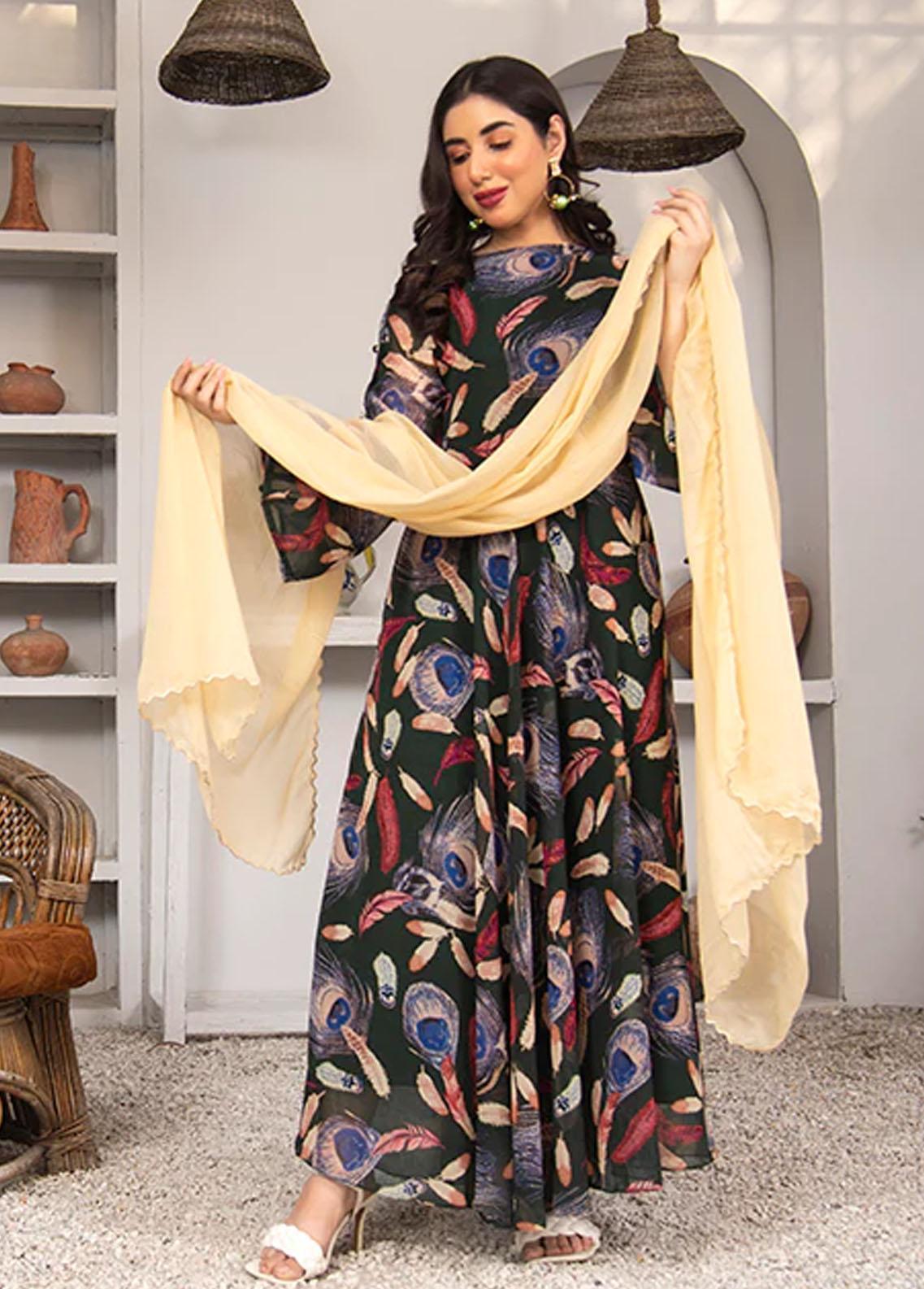 2 Piece Printed Chiffon Suit
