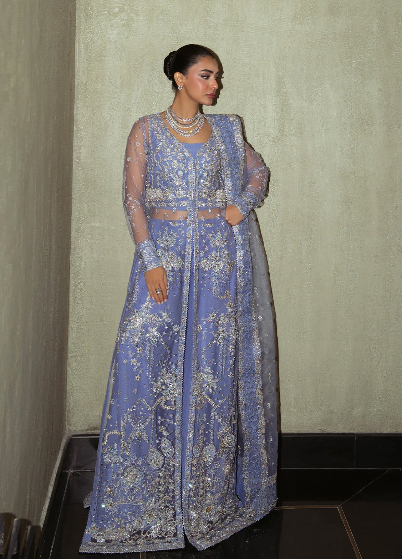 • EMBROIDERED AND HAND EMBELISHED NET LEFT PANEL.(1-PIECE)