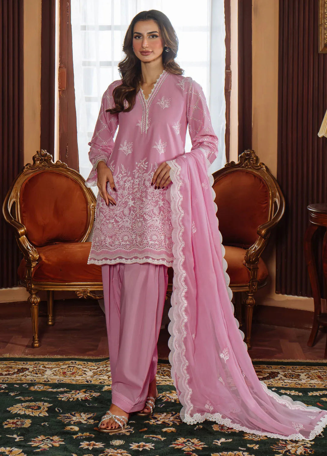 Sahar Embroidered Chikankari Suit Unstitched 3 Piece CK-25-V1-03 Pastel Rose - Festive Collection