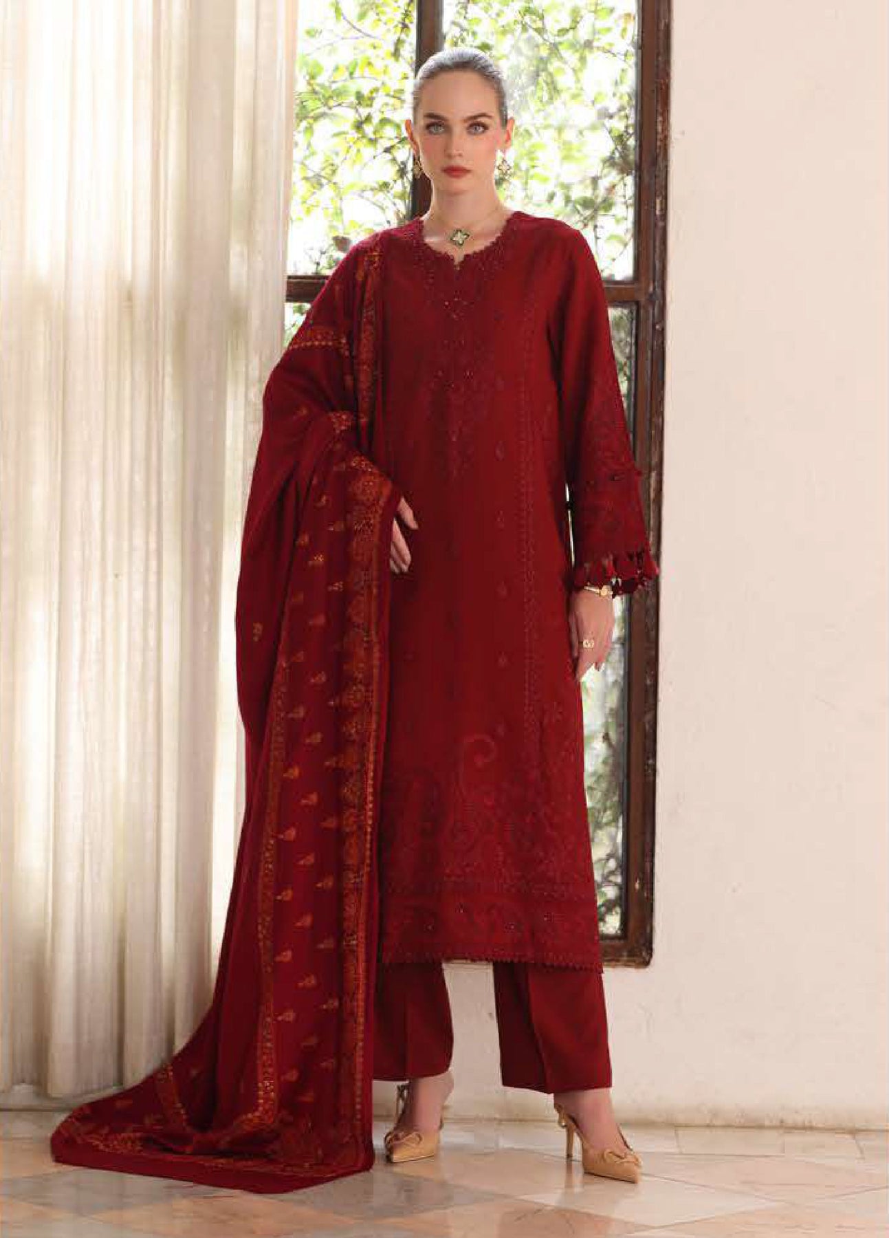 Noor by Saadia Asad Unstitched Linen Pashmina Shawl Embroidered Suits 3 Piece NSA25PW D5-Ember - Winter Collection