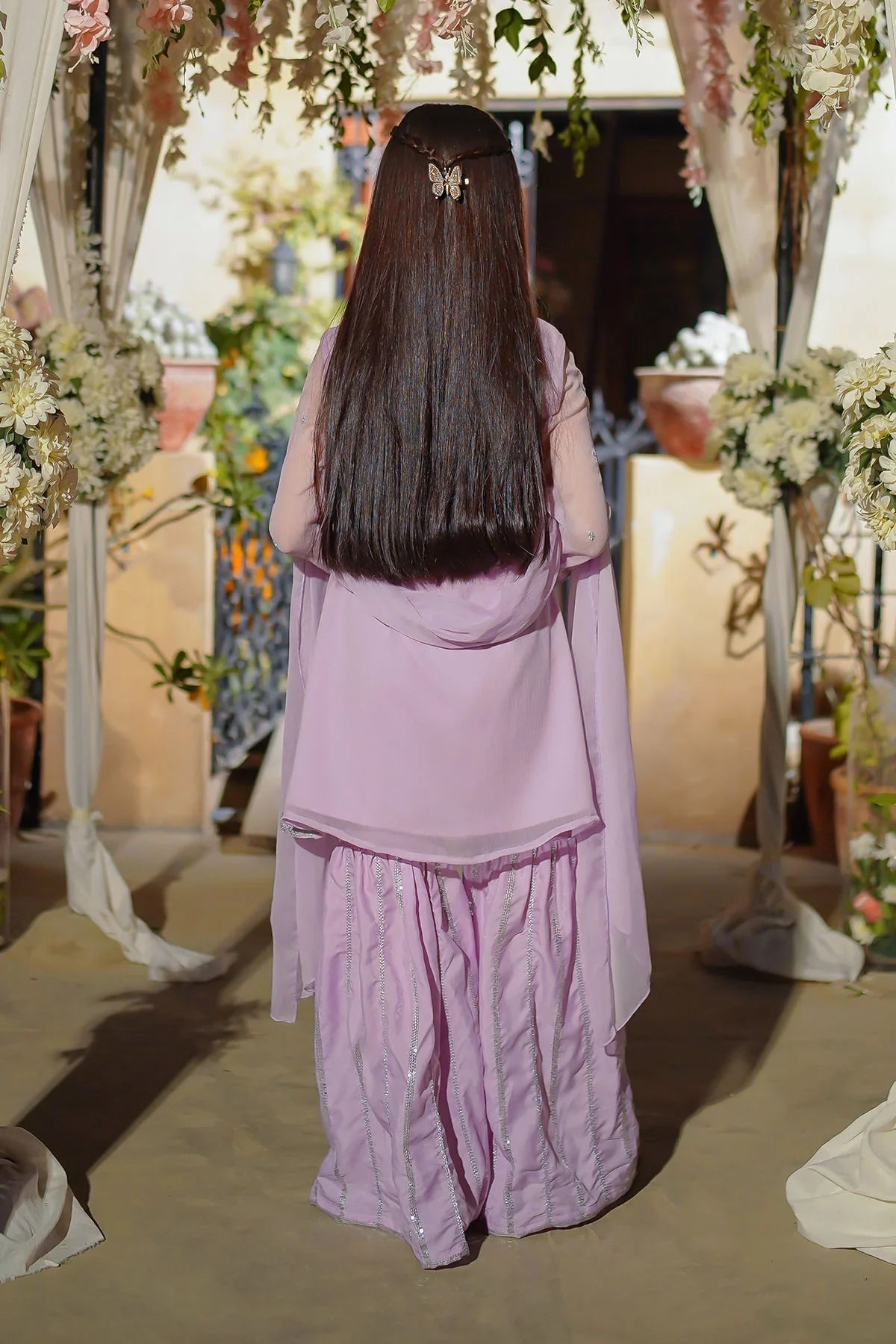 Bottom: Lavendar Malai Crepe Gharara Pants with Gotta Work