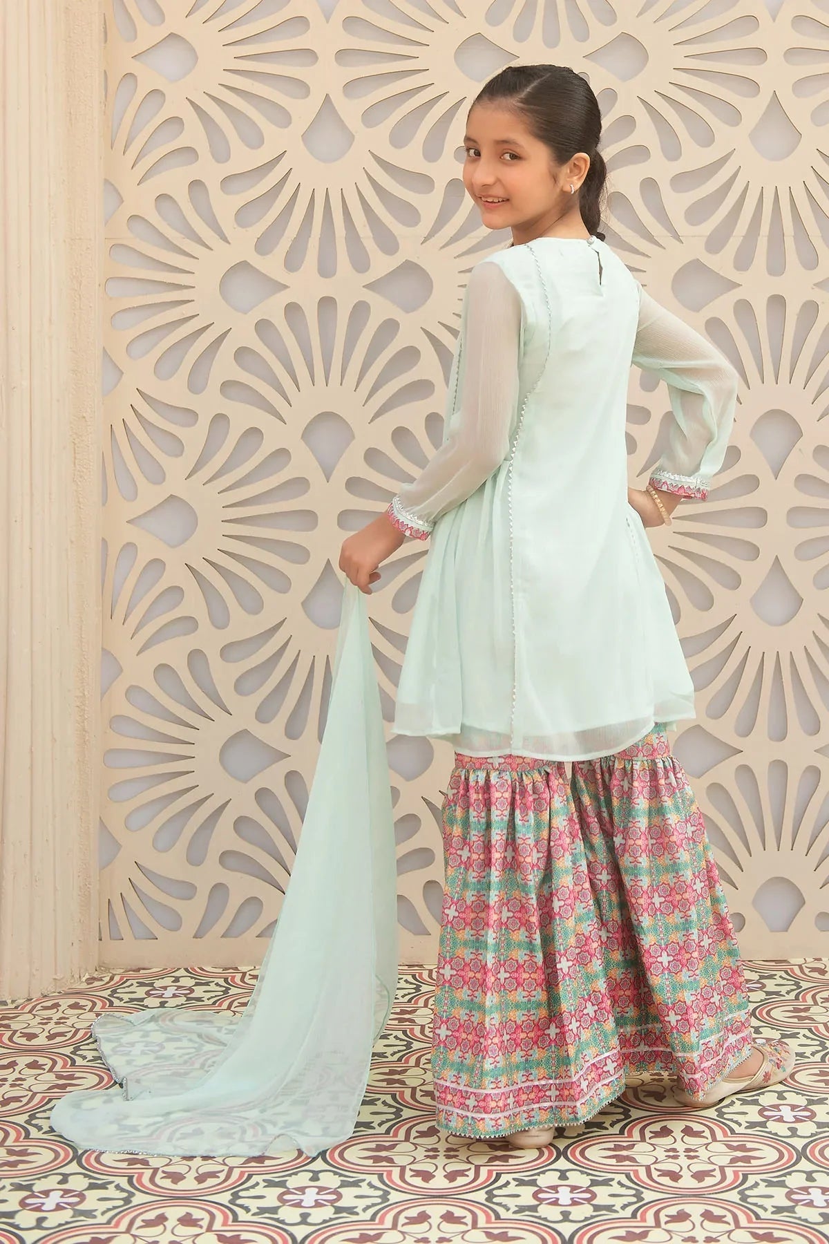 Bottom: Mint Digital Printed Malai Crepe Gharara
