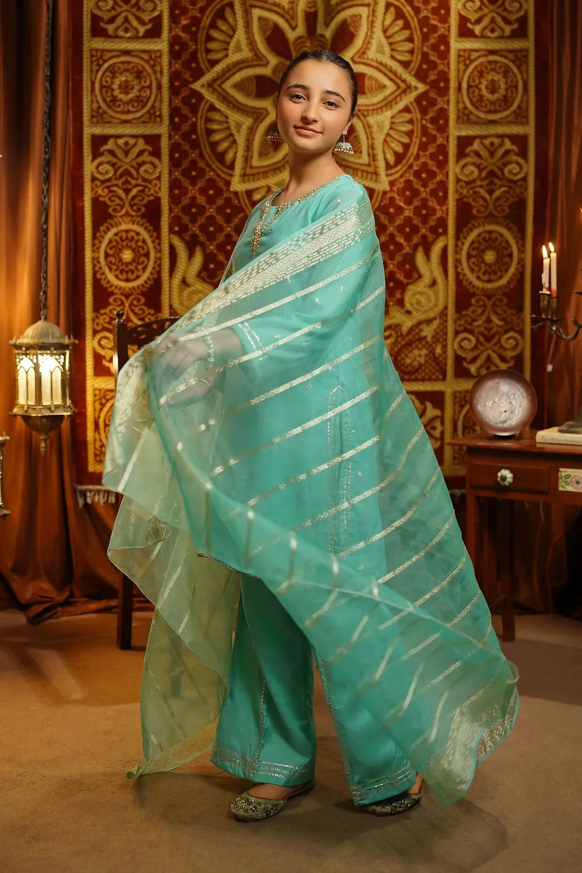 Dupatta: Sea Green Lorex Organza Dupatta"