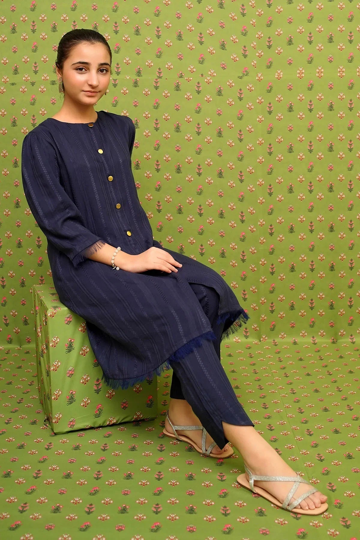 Ochre RTW Embroidered Girls 2 Piece Cotton Dobby Embellished OFW-SC-27 - Summer Collection
