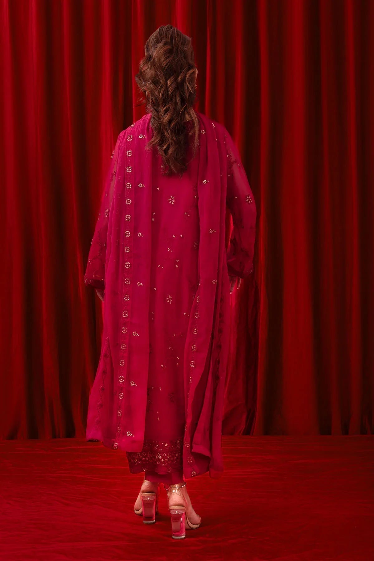 Dupatta: Magenta Pink Chiffon Dupatta with Embroidery"