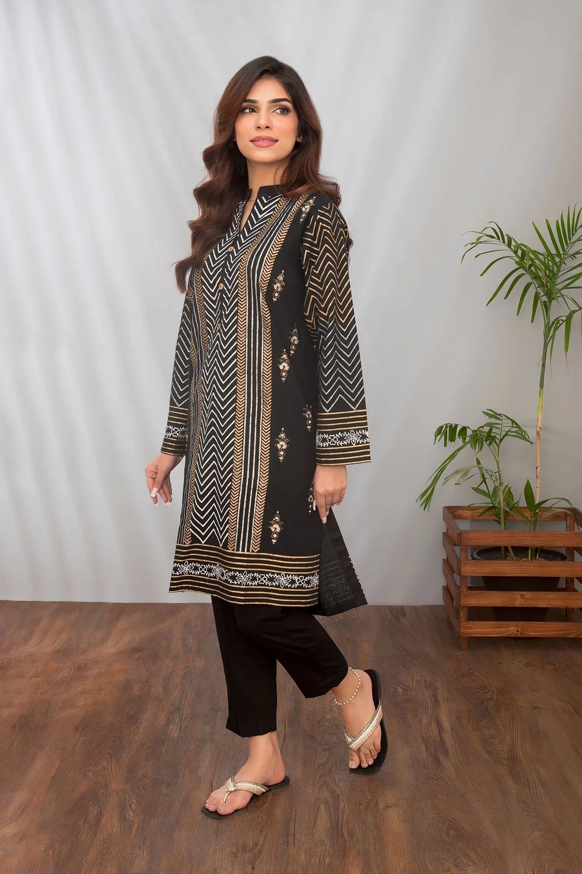 Top: Black Cotton Block Printed Kurta