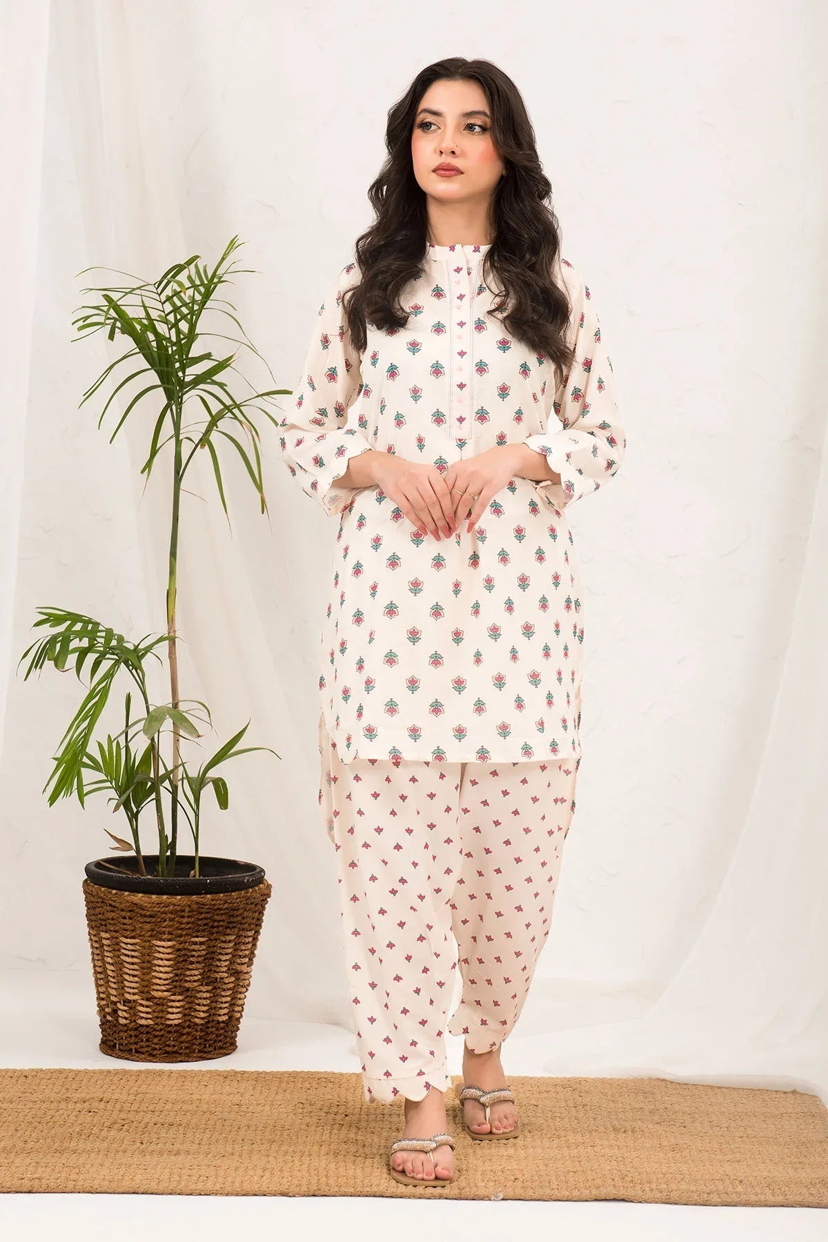 Bottom: Off White Swiss Lawn Digital Printed Trouser